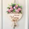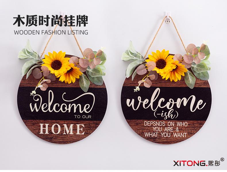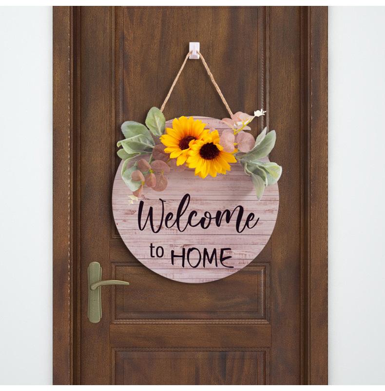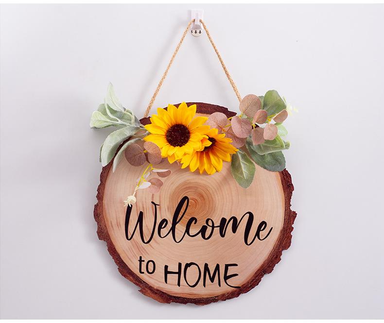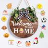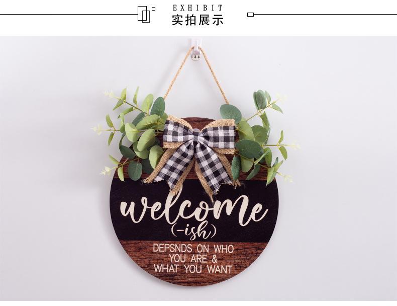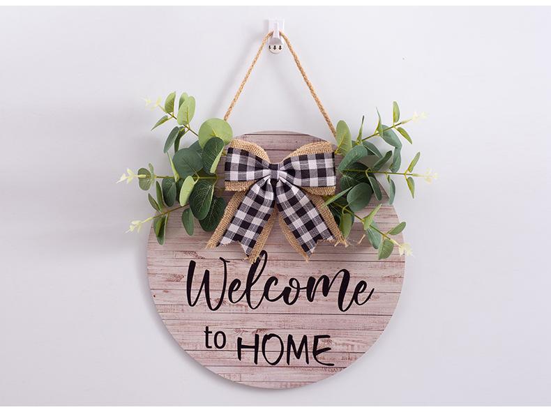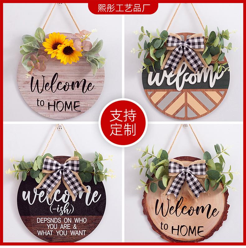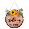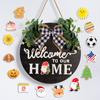 Etiqueta de puerta de madera transfronteriza Fiesta de bienvenida Puerta de madera redonda de bienvenida BIENVENIDO A CASA Lazo colgante