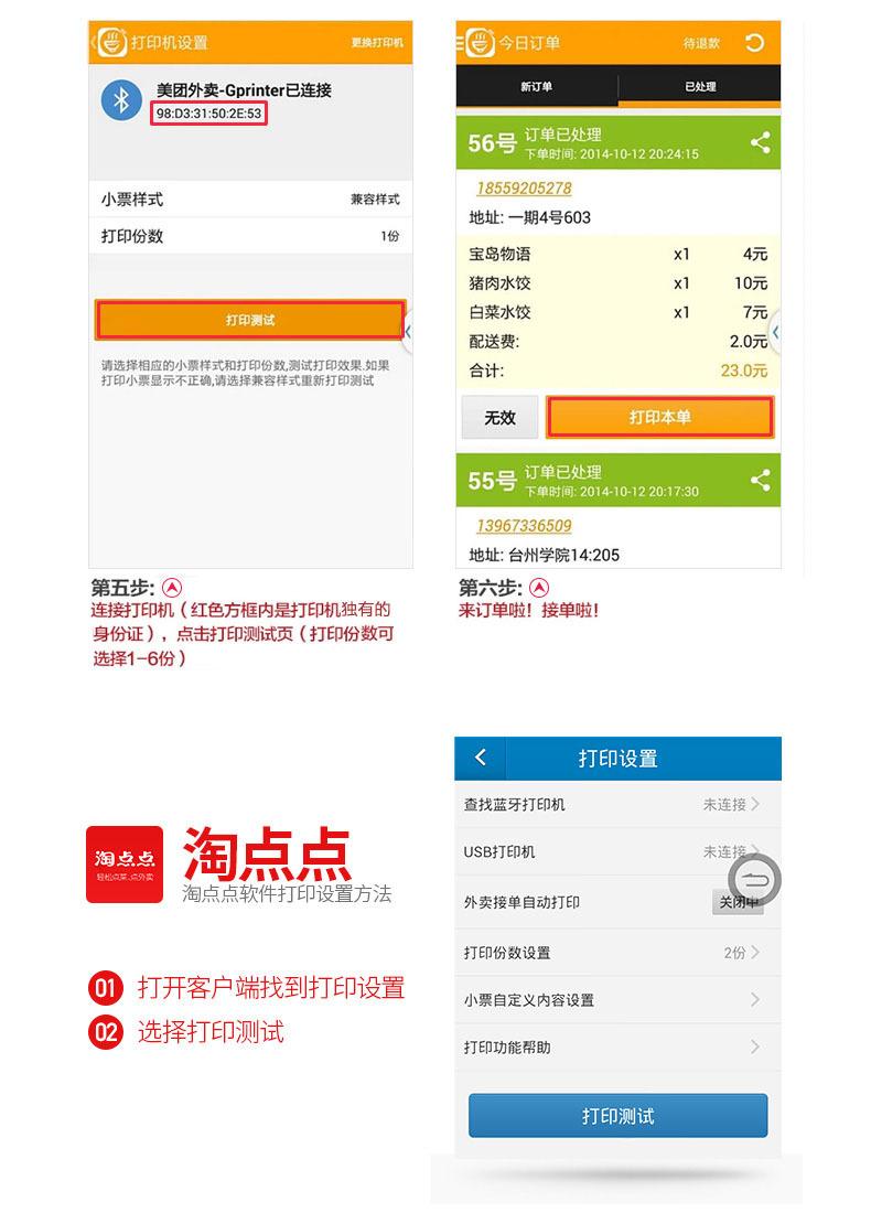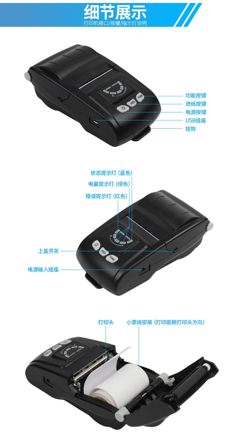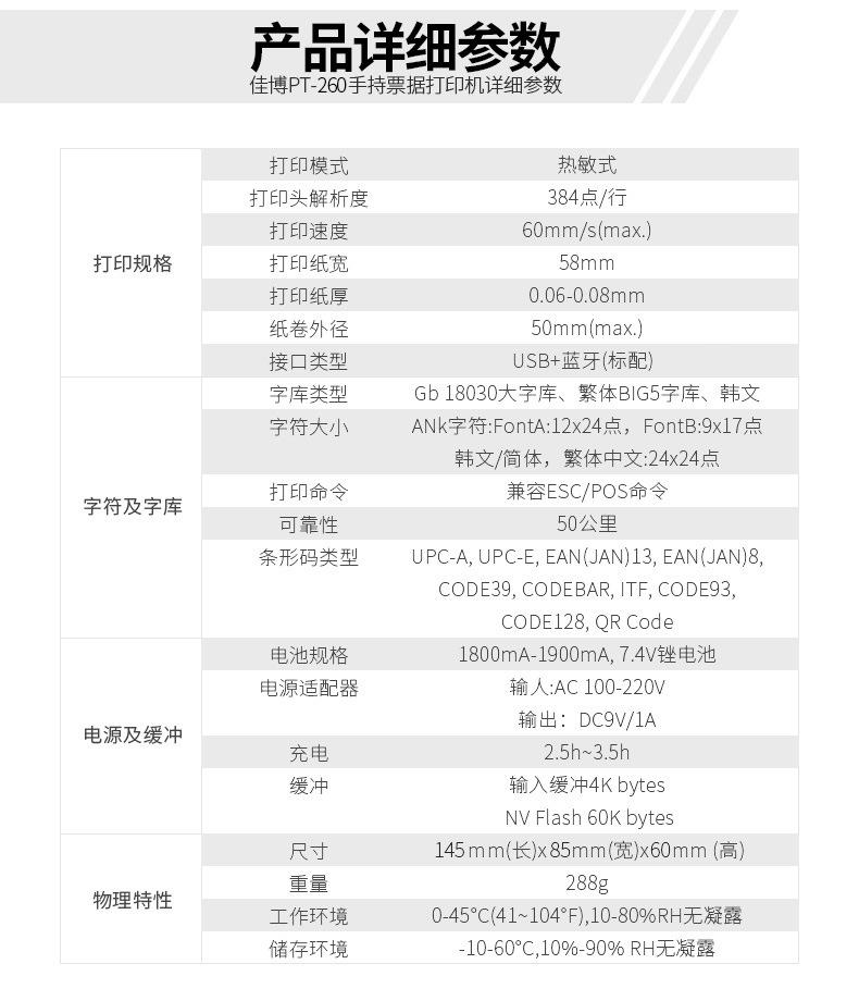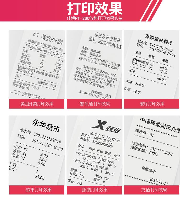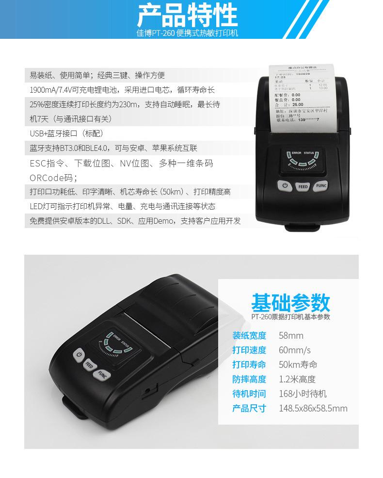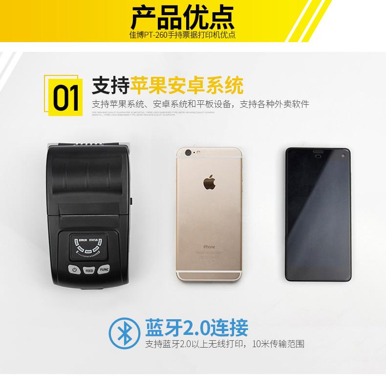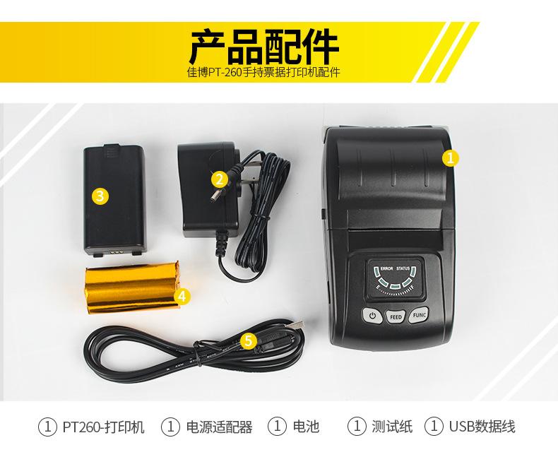 Impresora térmica Jiabo 260, impresora portátil de recibos para llevar, software, impresora de código de barras Bluetooth