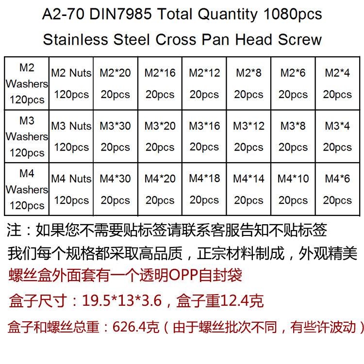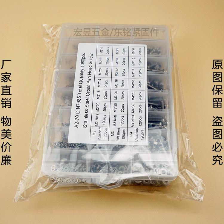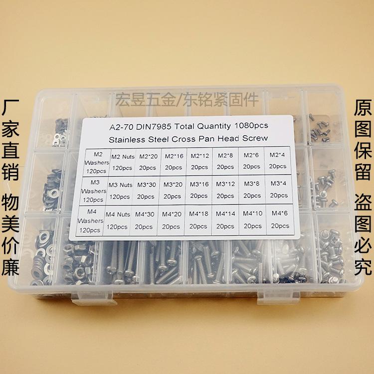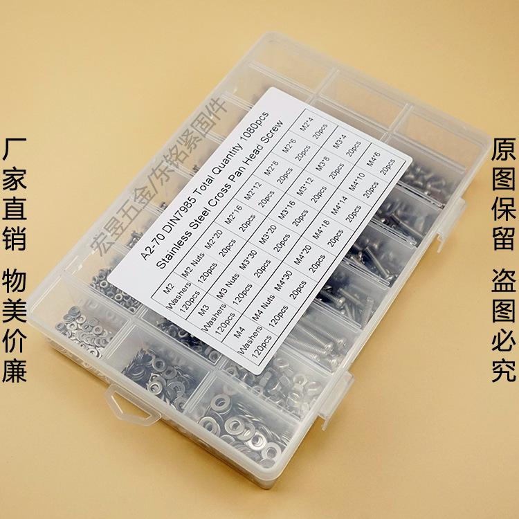 1080 piezas M2 M3 M4 comercio exterior acero inoxidable 304 juego combinado de tornillos de cabeza plana cruzPeso neto: 626.4g