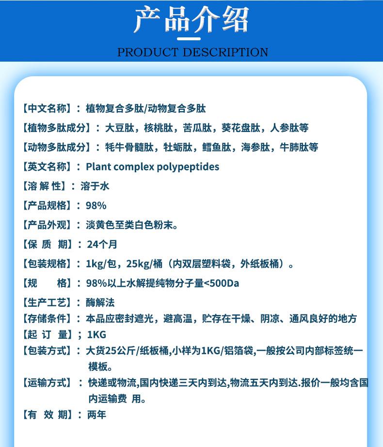 Animal comprehensive peptide powder 98%, Plant comprehensive peptide powder 98%