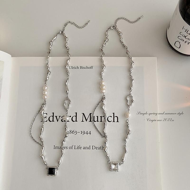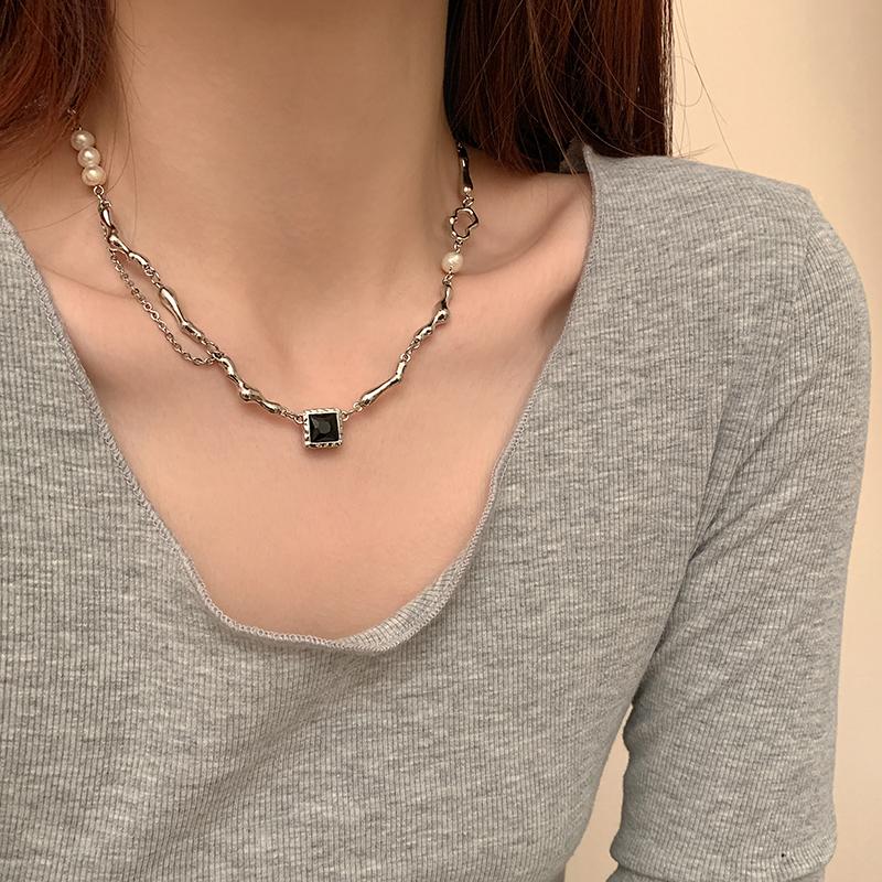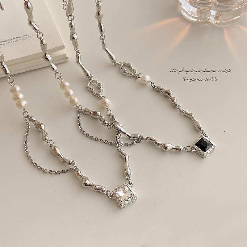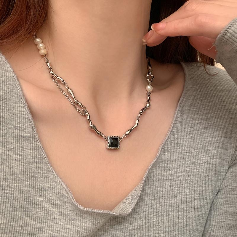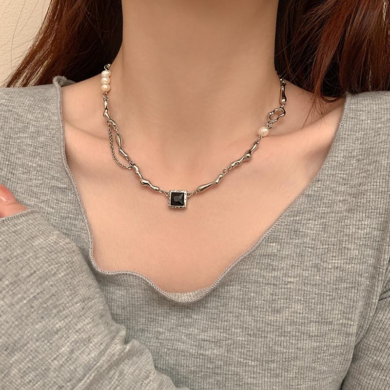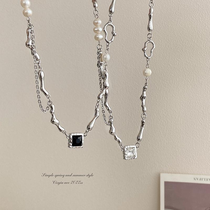 Collar Nuevo de Perlas de Agua Dulce y Zirconia para Mujer, Hip Hop Dulce Cool Spice Girl, Alto Sentido del Diseño, Nicho, Cadena para Clavícula