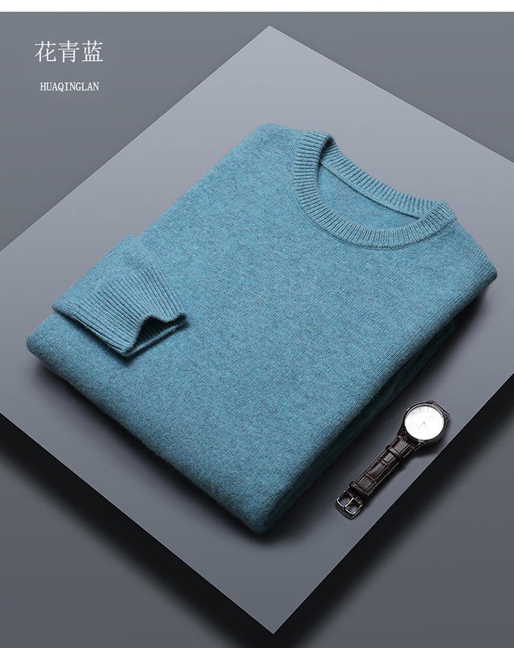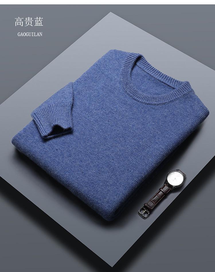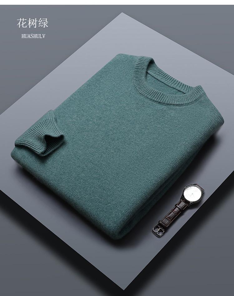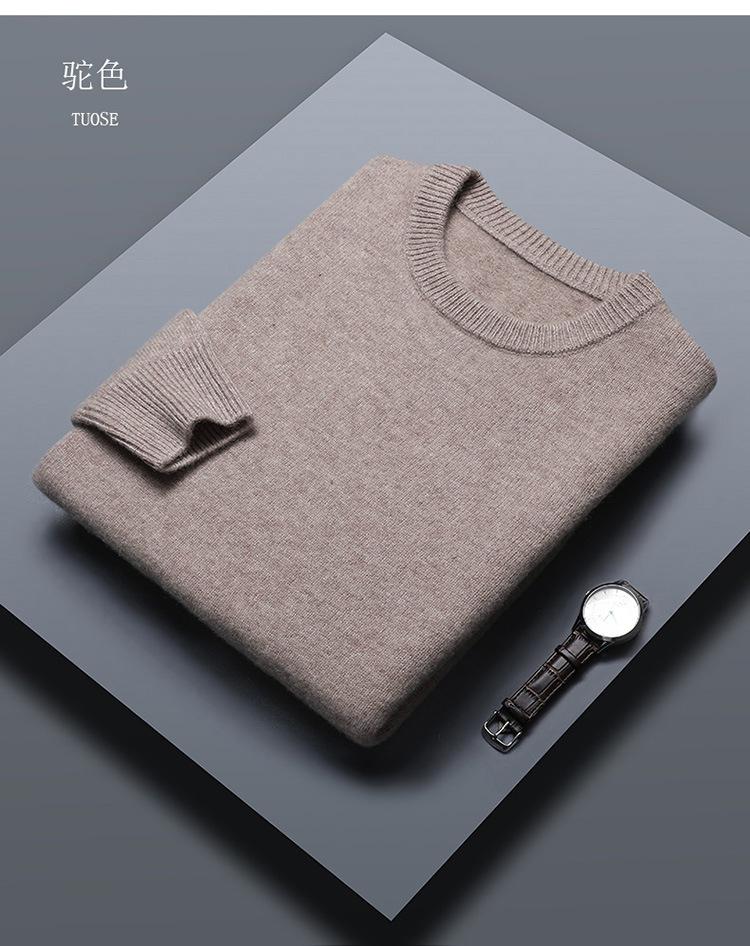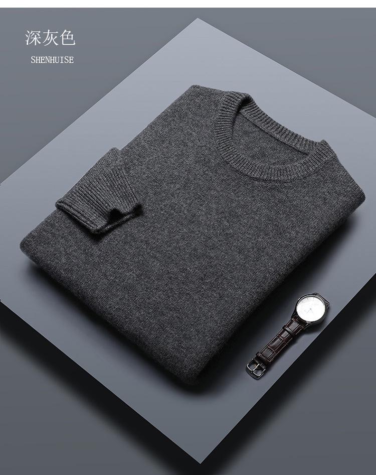Suéter de lana 100% de color liso para hombre, jersey grueso de cuello redondo, suéter de punto suelto sin cachemira, talla grande, otoño e invierno, nuevo