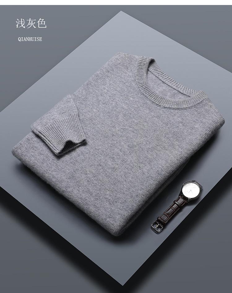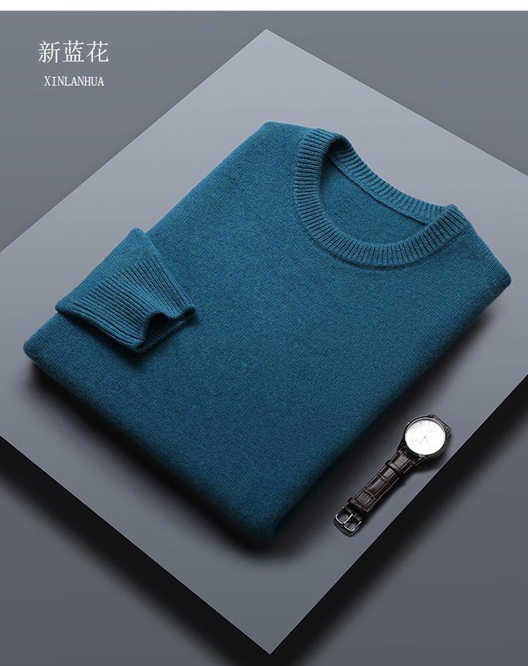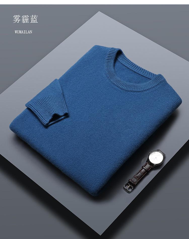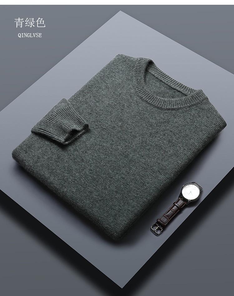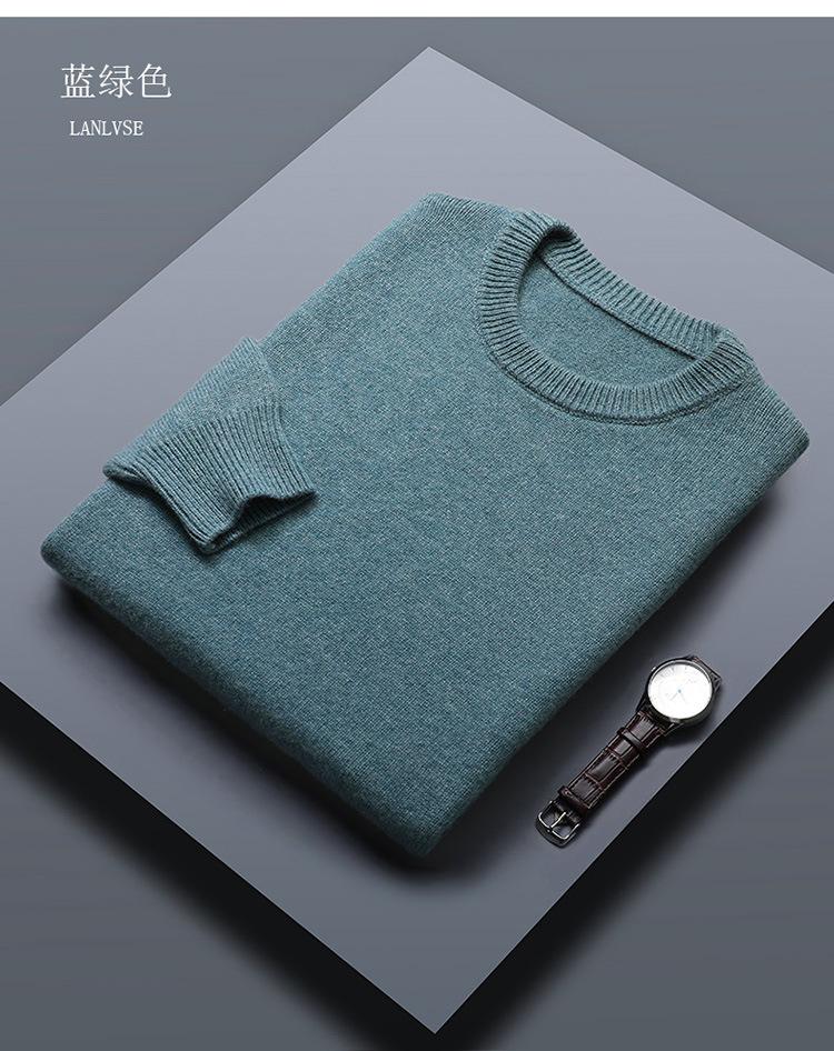 Suéter de lana 100% de color liso para hombre, jersey grueso de cuello redondo, suéter de punto suelto sin cachemira, talla grande, otoño e invierno, nuevo