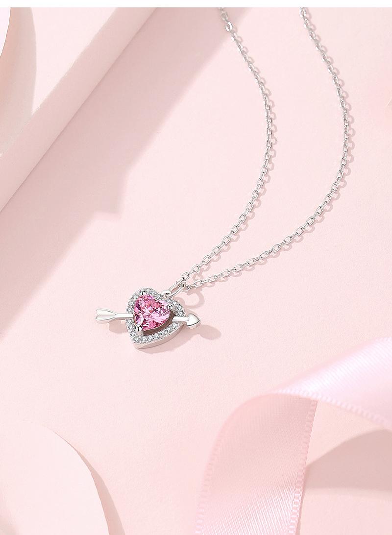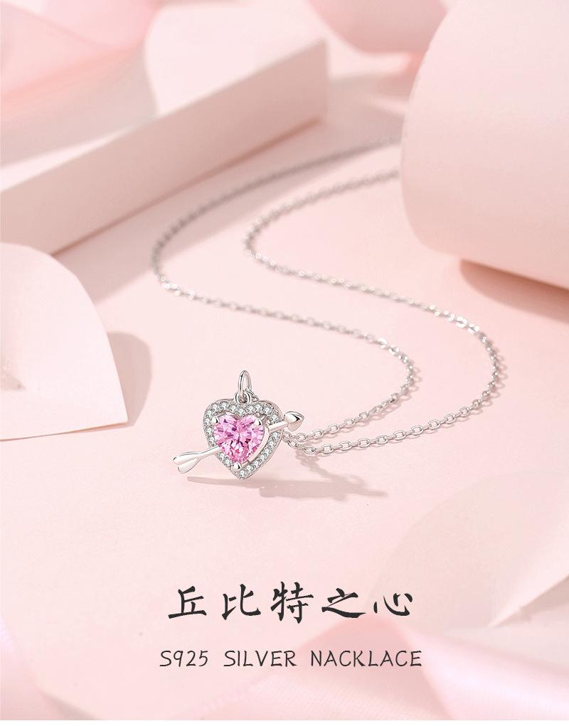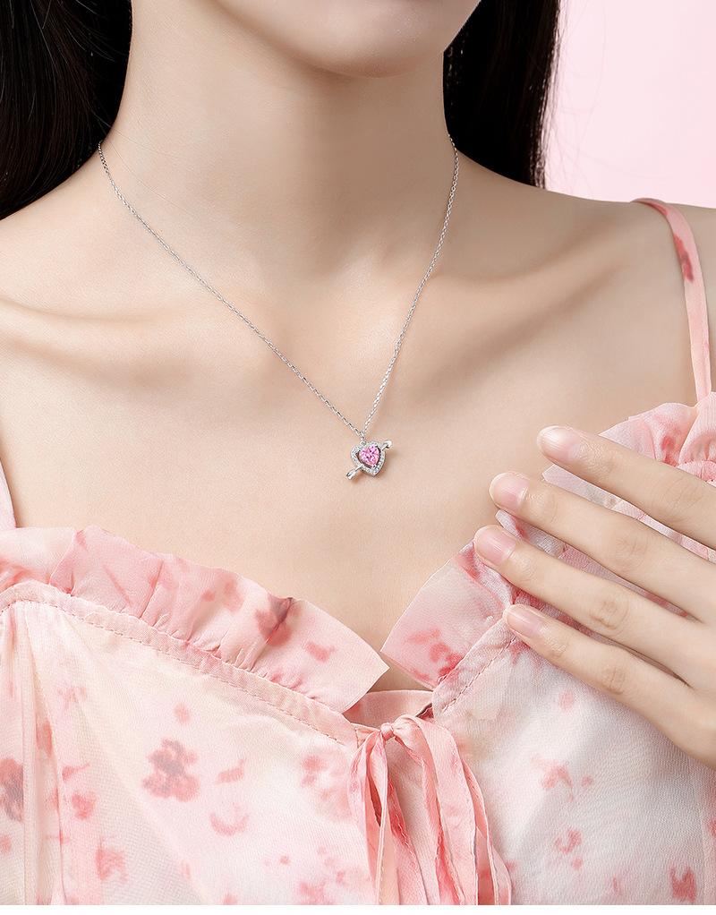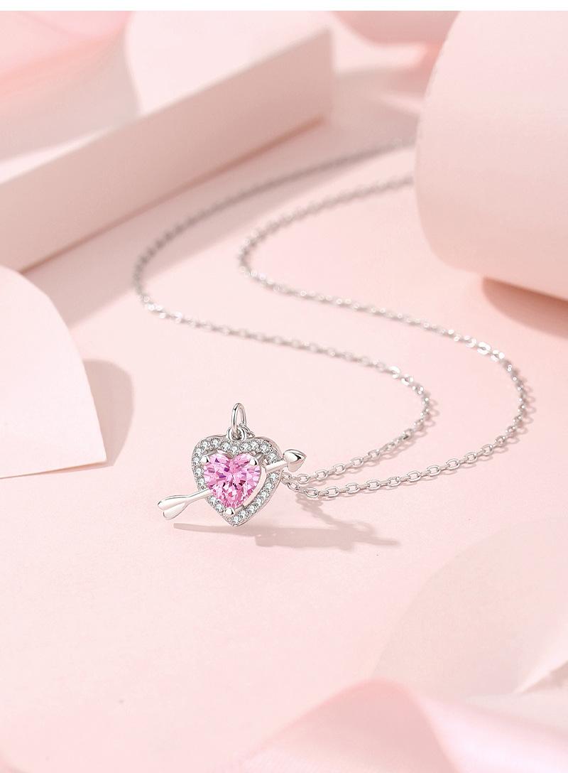| Collar Corazón Guardián Diamante Rosa Amor Plata S925 Moda Mujer Dulce y de Alta Gama Regalo Día de San Valentín Chino Daji Maid |