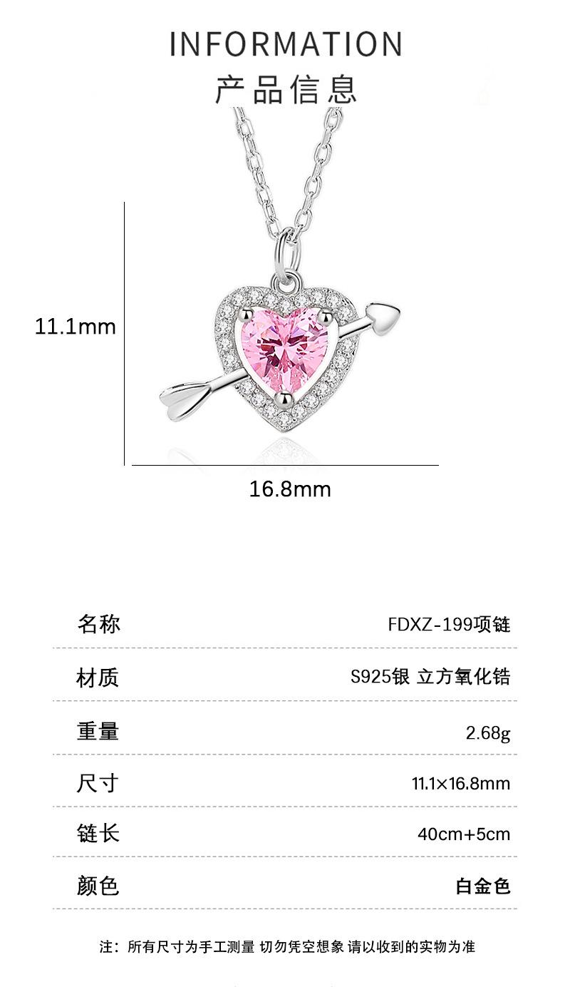 | Collar de plata esterlina 925 para mujer, diseño de nicho, cadena de clavícula simple con circonita rosa, colgante de corazón ins contigo |