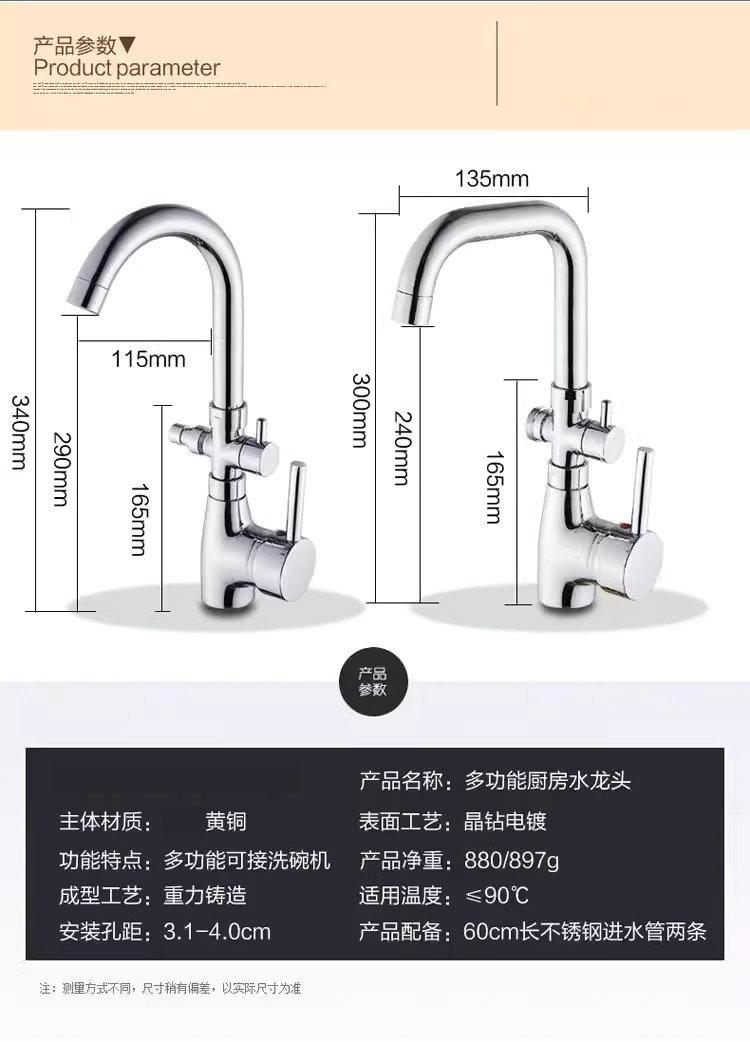 Grifo de cocina universal multifuncional con válvula de cobre para agua caliente y fría, venta al por mayor