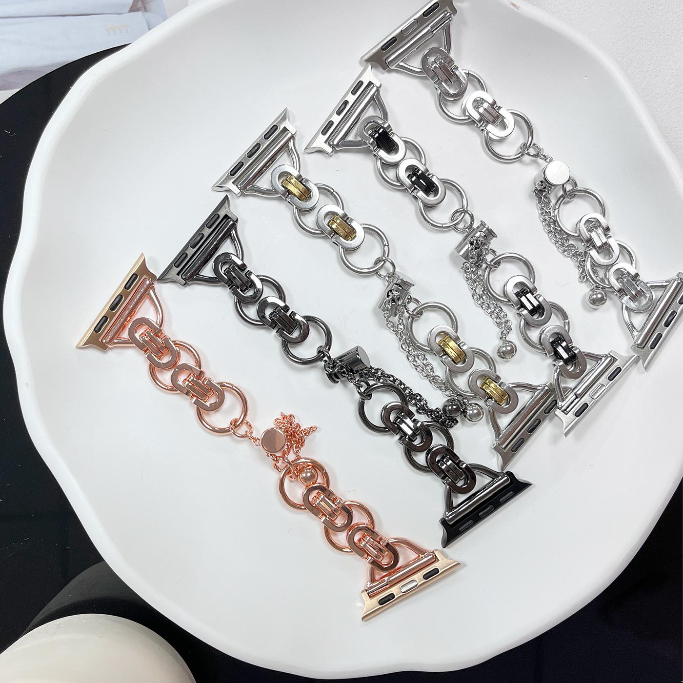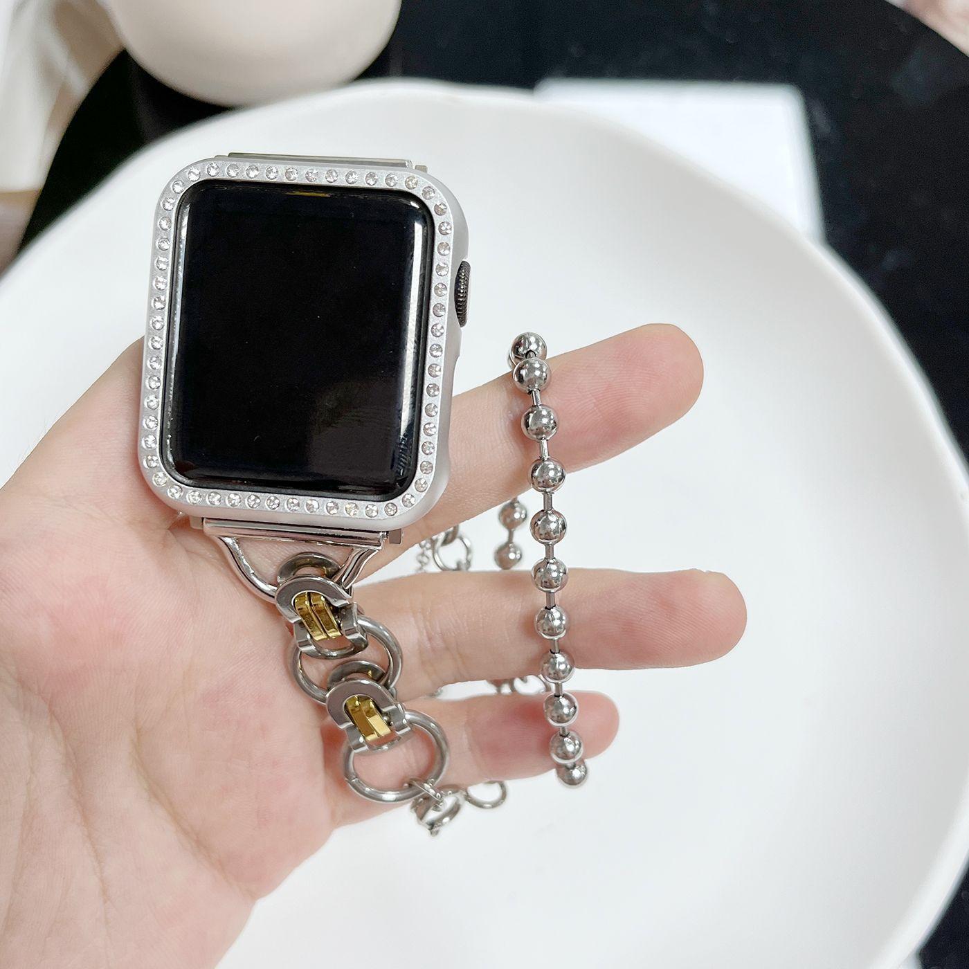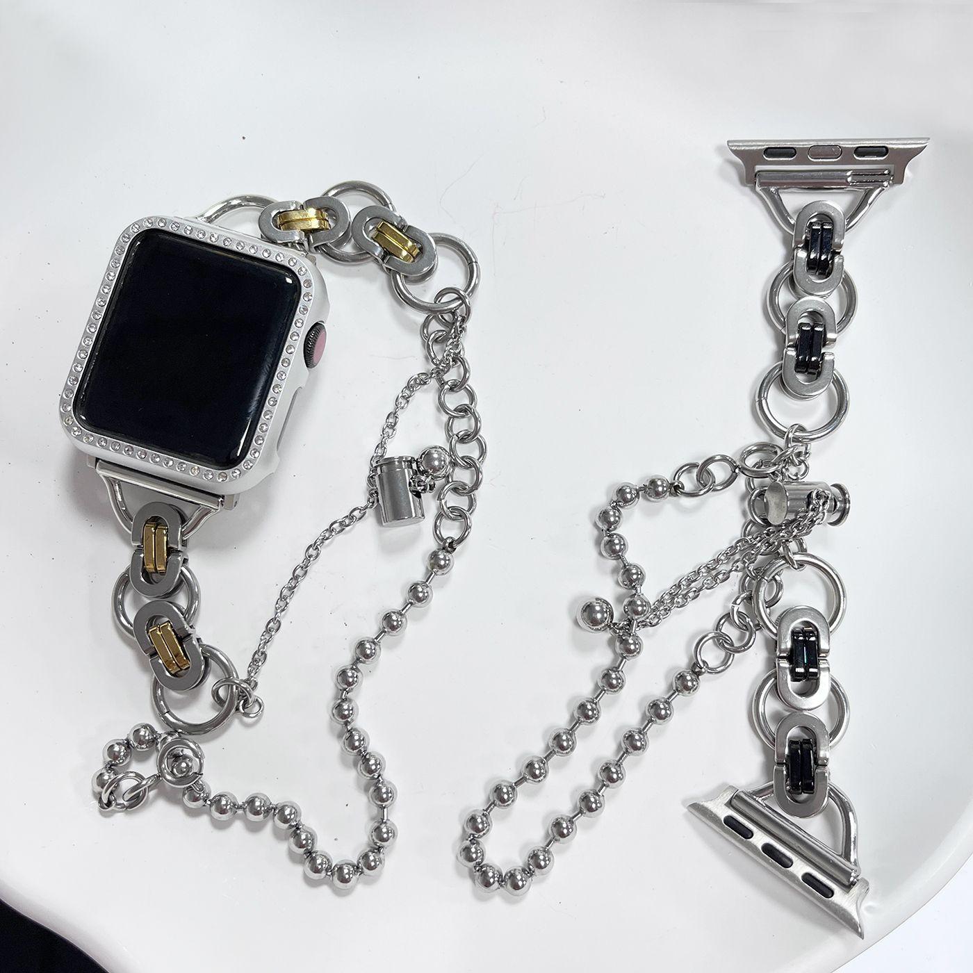 Adecuado para correa de reloj Apple s8 applewatch acero inoxidable doble anillo cadena de doble cuenta iwatch se correa de reloj de metal