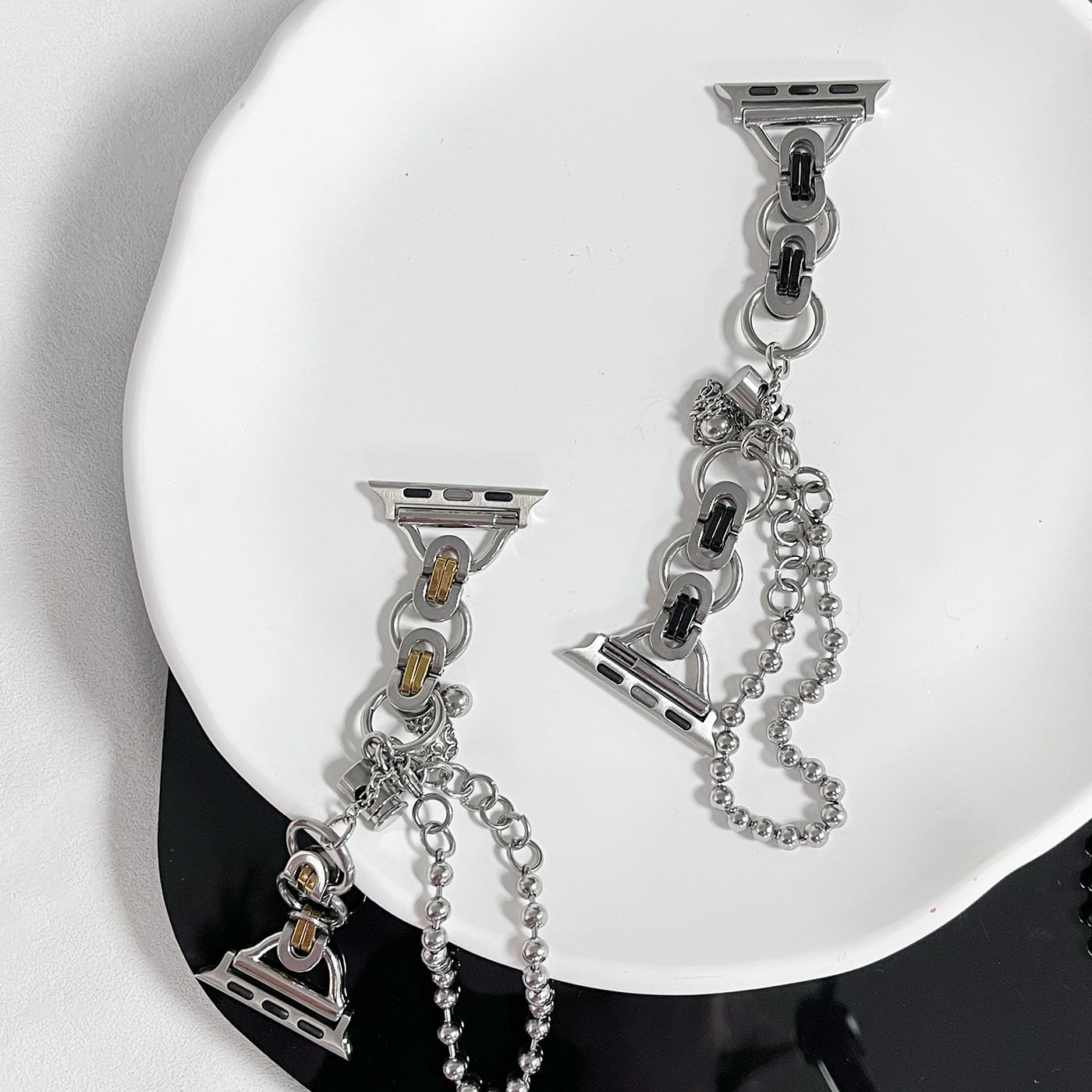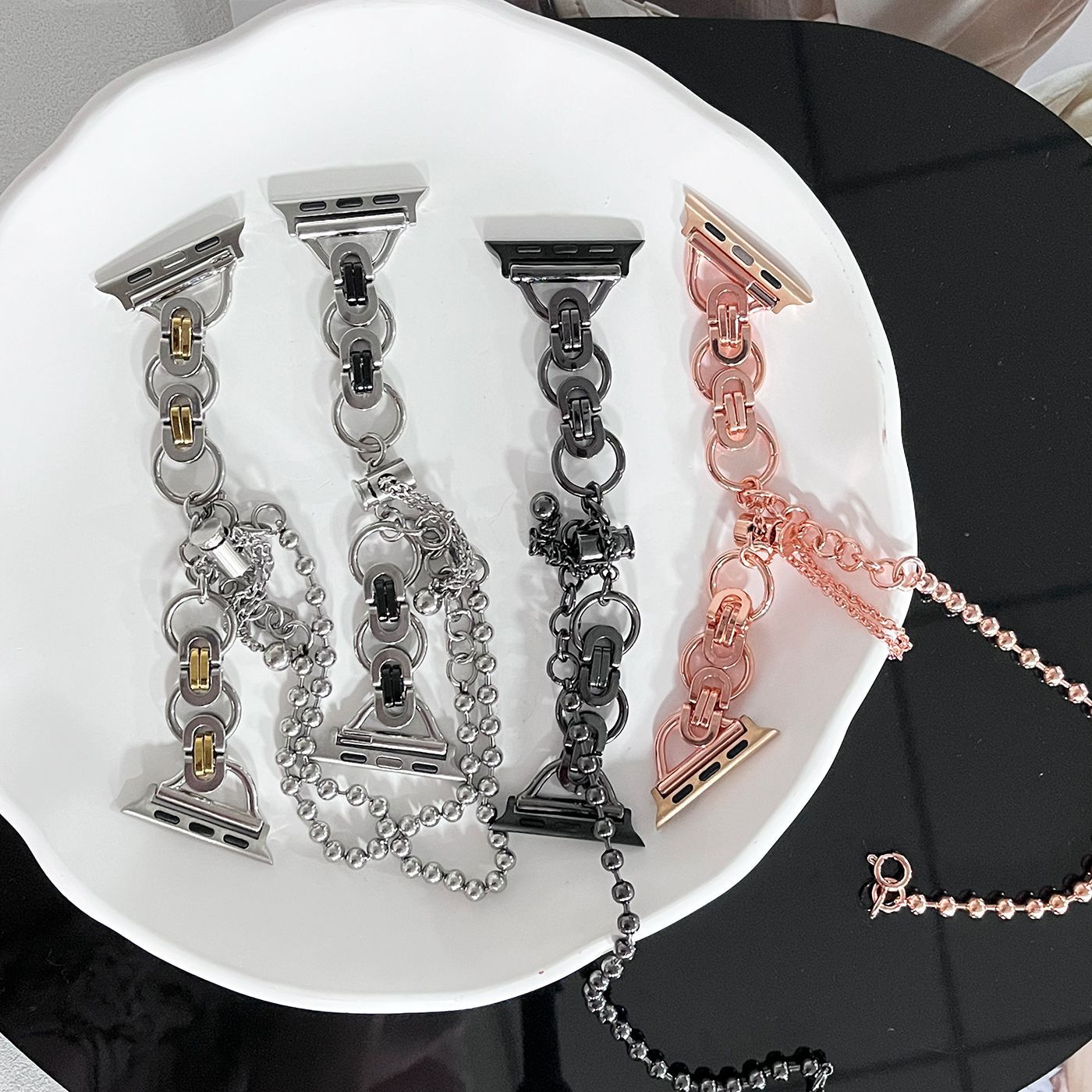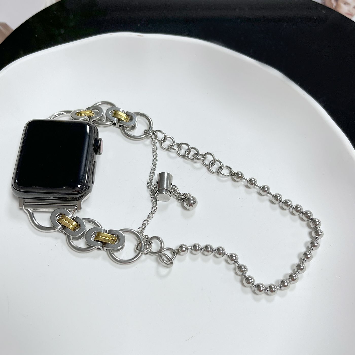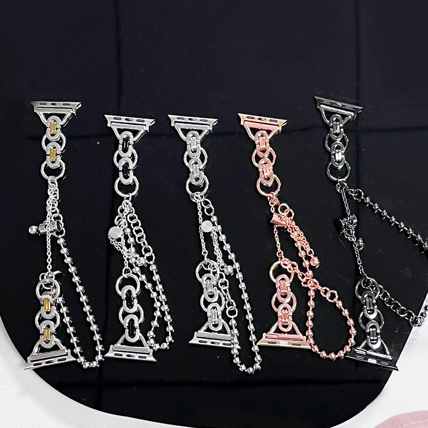 Adecuado para correa de reloj Apple s8 applewatch acero inoxidable doble anillo cadena de doble cuenta iwatch se correa de reloj de metal