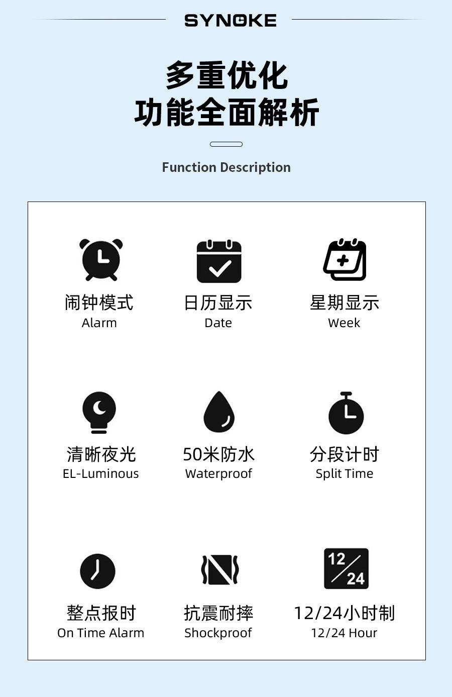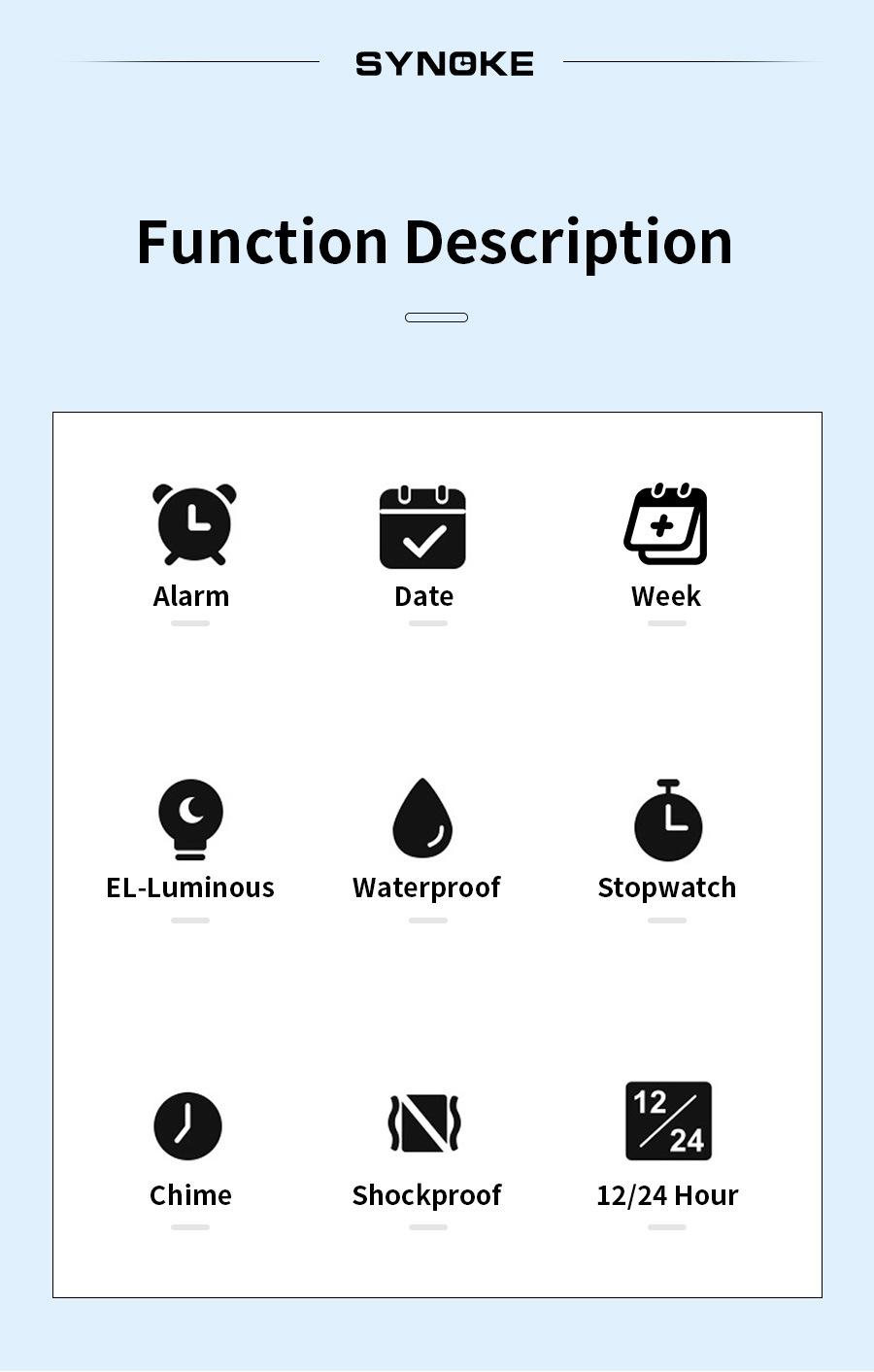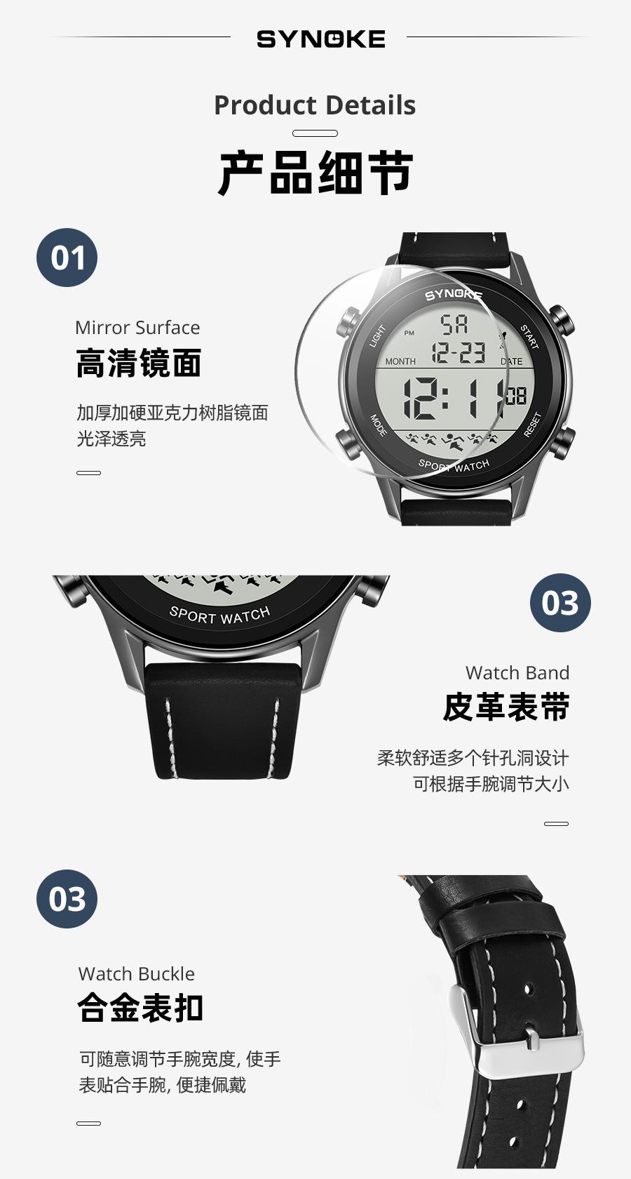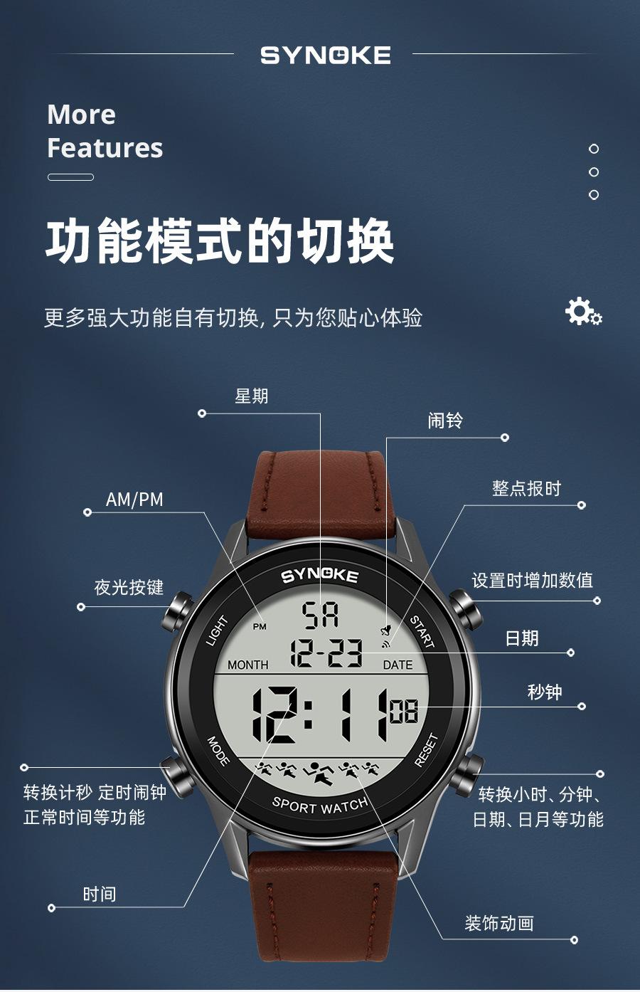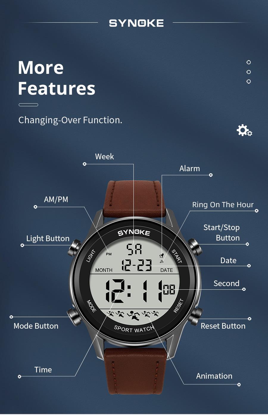 Productos de fábrica Reloj electrónico deportivo para hombre SYNOKE correa multifuncional impermeable pantalla grande reloj deportivo nuevo impermeable