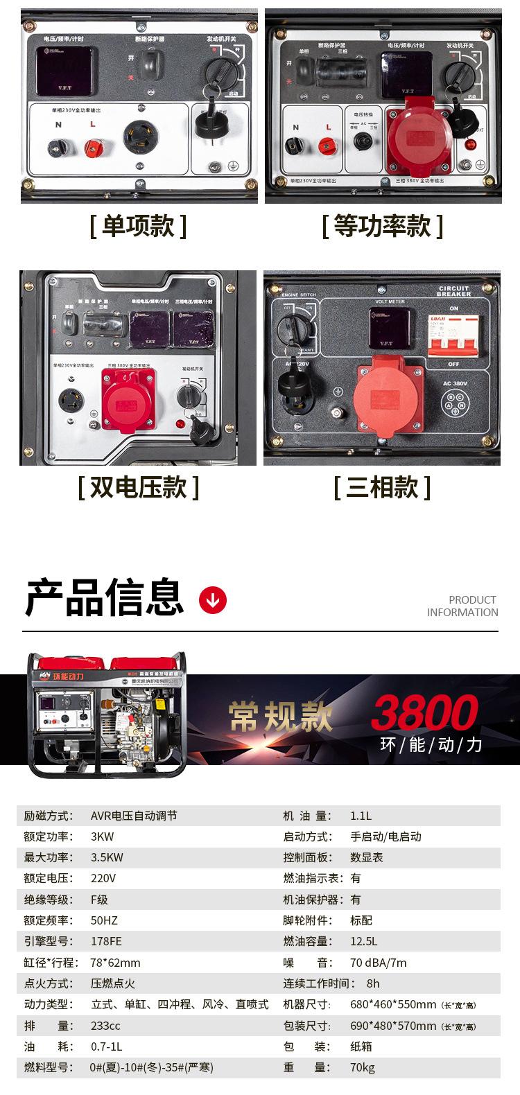 Regular model 3KW single hand start 220V, Conventional 3KW single-phase electric start 220V, Conventional 5KW ...