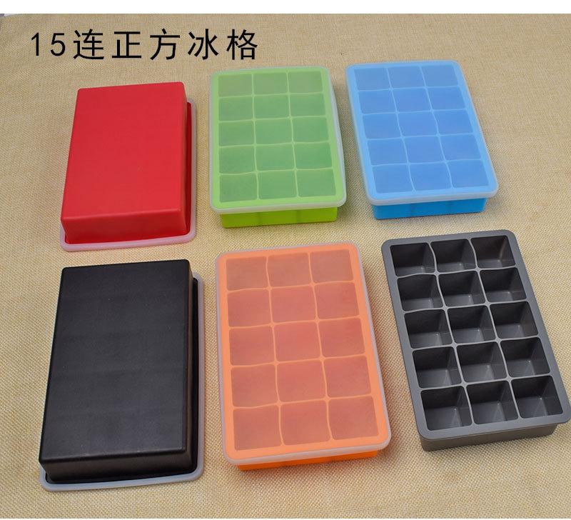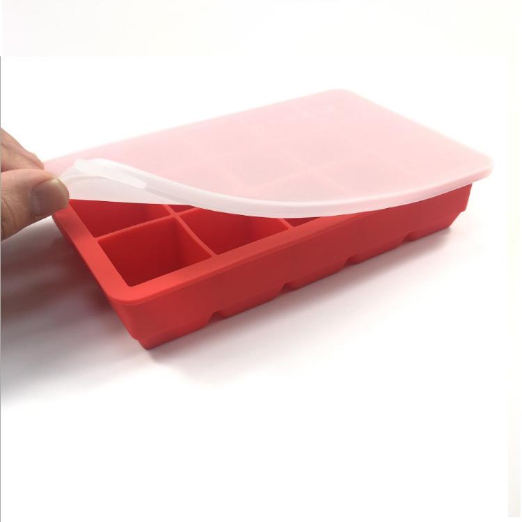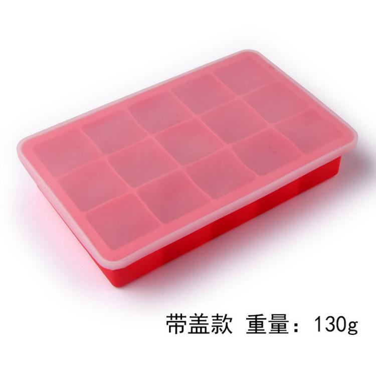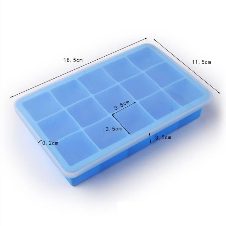 Punto Transfronterizo 15-Cuadrículas Cubo de Hielo Cuadrado Bandeja de Hielo con Tapa Fabricador de Hielo Doméstico Caja Suplemento Alimenticio para Bebés Molde de Bandeja de Hielo de Silicona