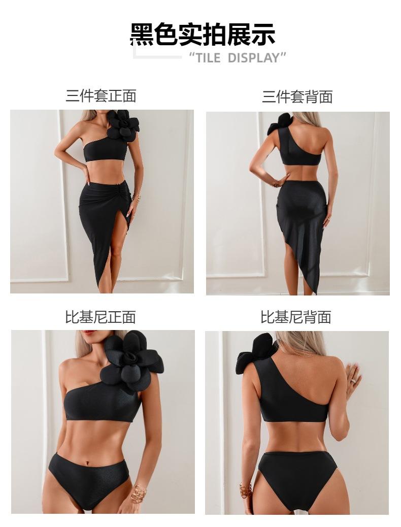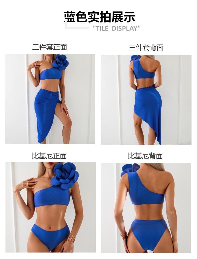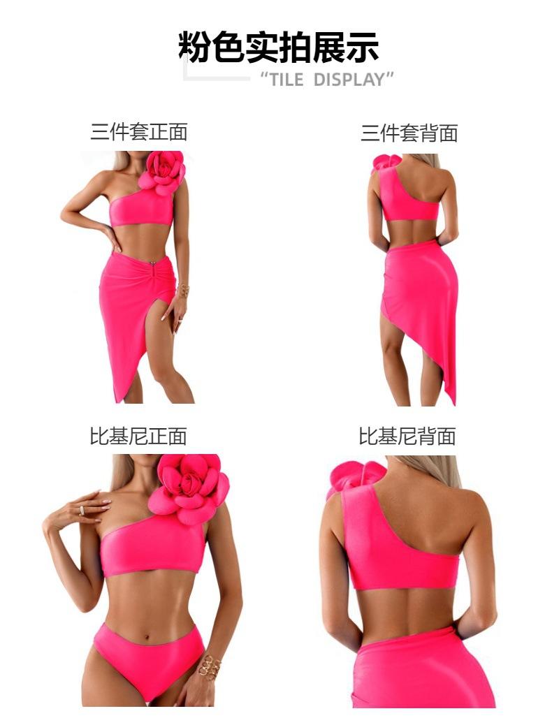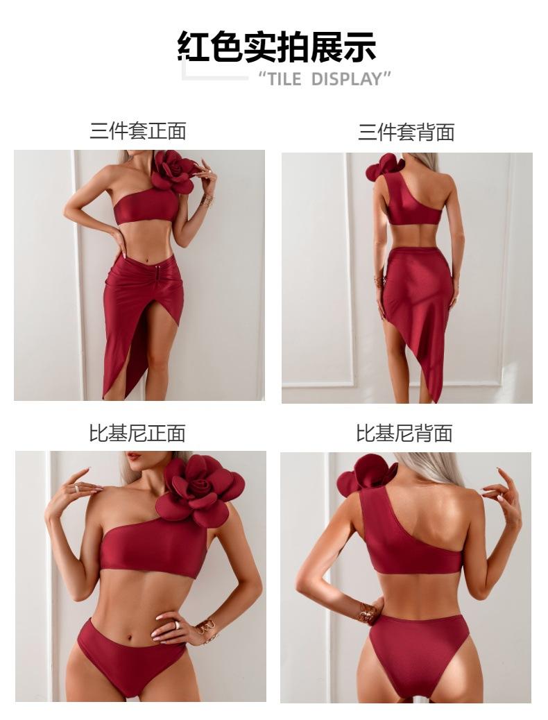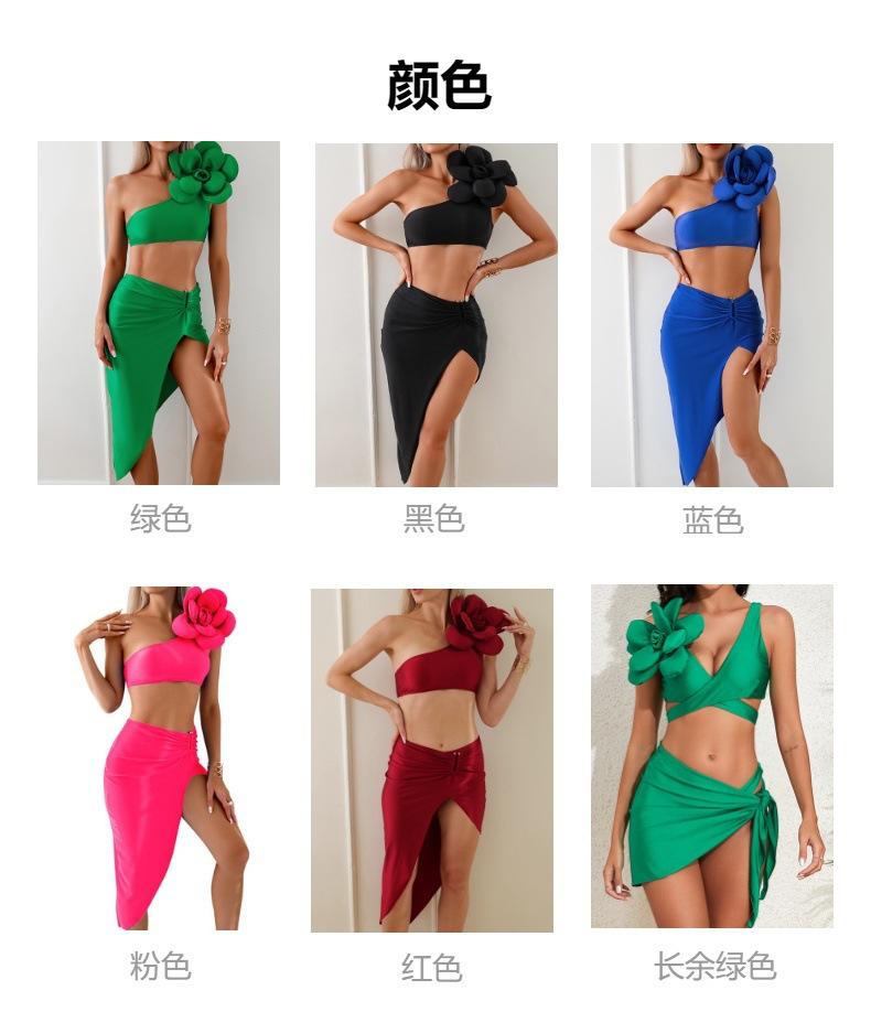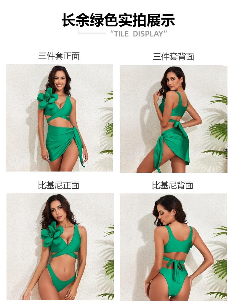 Nuevo Traje de Baño Dividido de Amazon para Mujer, Bikini de Nailon de Color Sólido, Traje de Baño de Tres Piezas para Aguas Termales, Listo para Venta al Mayoreo
