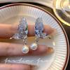 Aretes de Perlas para Mujer Estilo Ins Simple Niche de Alta Gama Aretes Elegantes Aretes Retro Populares Aguja de Plata Venta al por Mayor