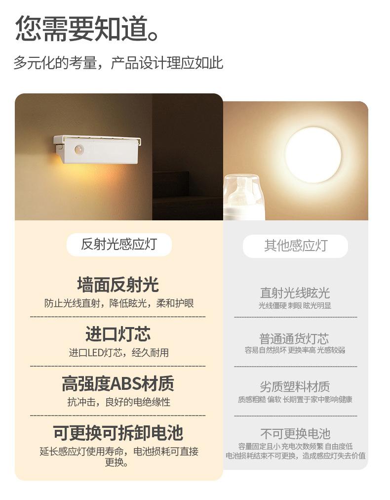 Luz nocturna con sensor de cuerpo humano, luz nocturna recargable, lámpara de pared, luz para alacena, pasillo, dormitorio, instalación sin cables, LED, luz nocturna inteligente, sueño