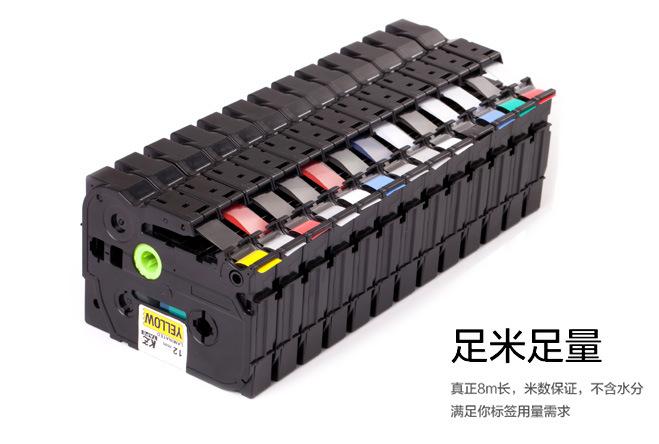 Características de la cinta para etiquetadora: Cinta adhesiva recubierta de alta resistencia (8 m de longitud). Este modelo de cinta es impermeable, resistente al aceite, a altas temperaturas, a la corrosión y al desgaste, y no se decolora fácilmente. Es apta para uso en interiores y exteriores, y se ha utilizado en comunicaciones, electricidad, bibliotecas, hospitales, etc.