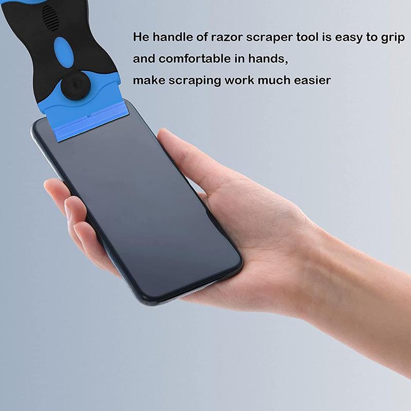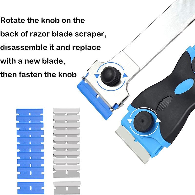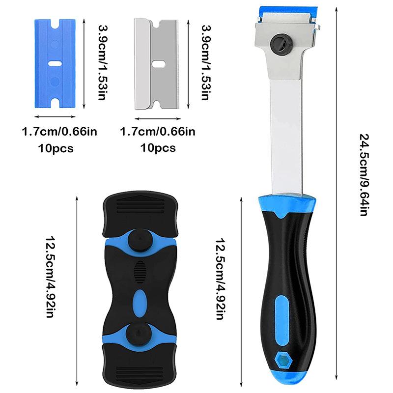 22 piece set (1 blue and black handle extended blade 1 blue and black handle double-sided scraper 10 metal blade 10 blue plastic blade)
