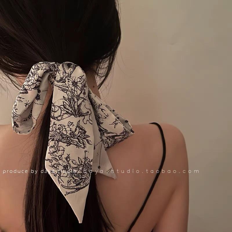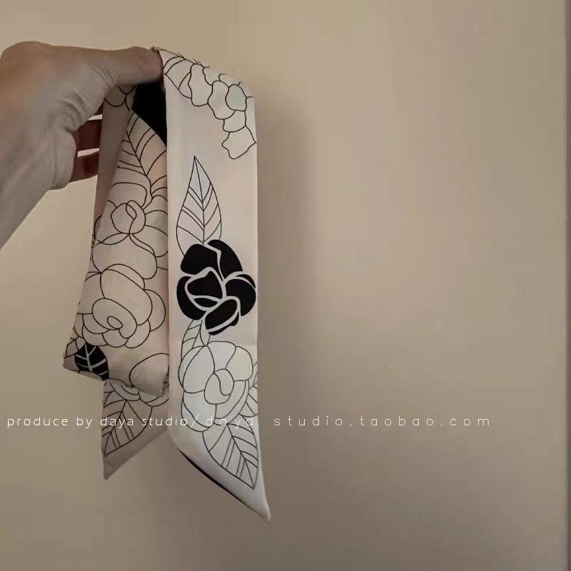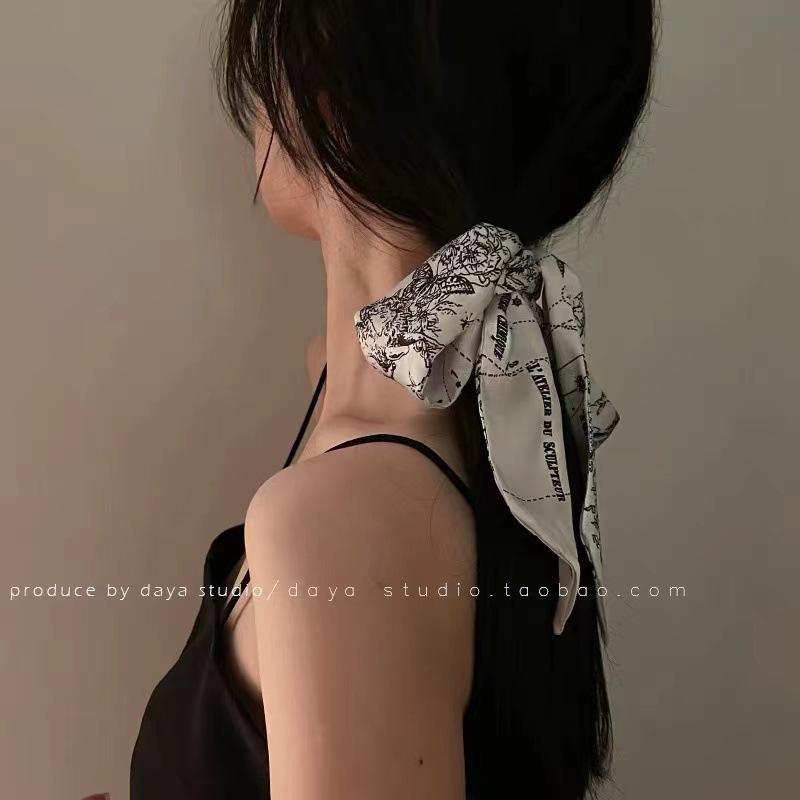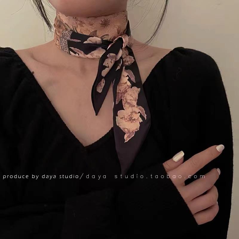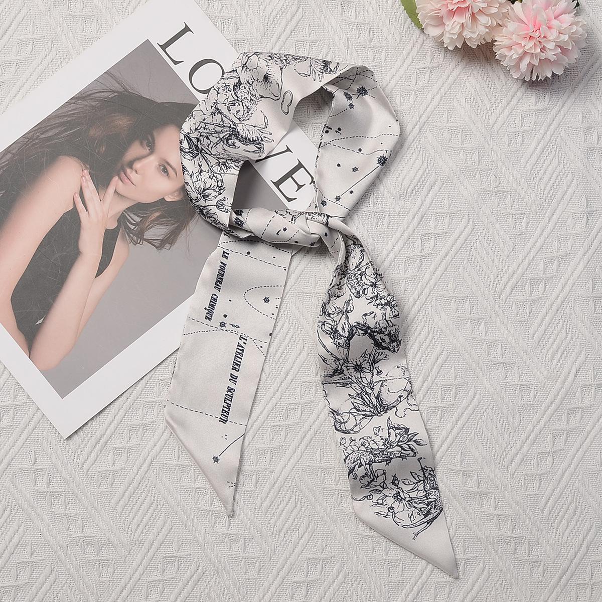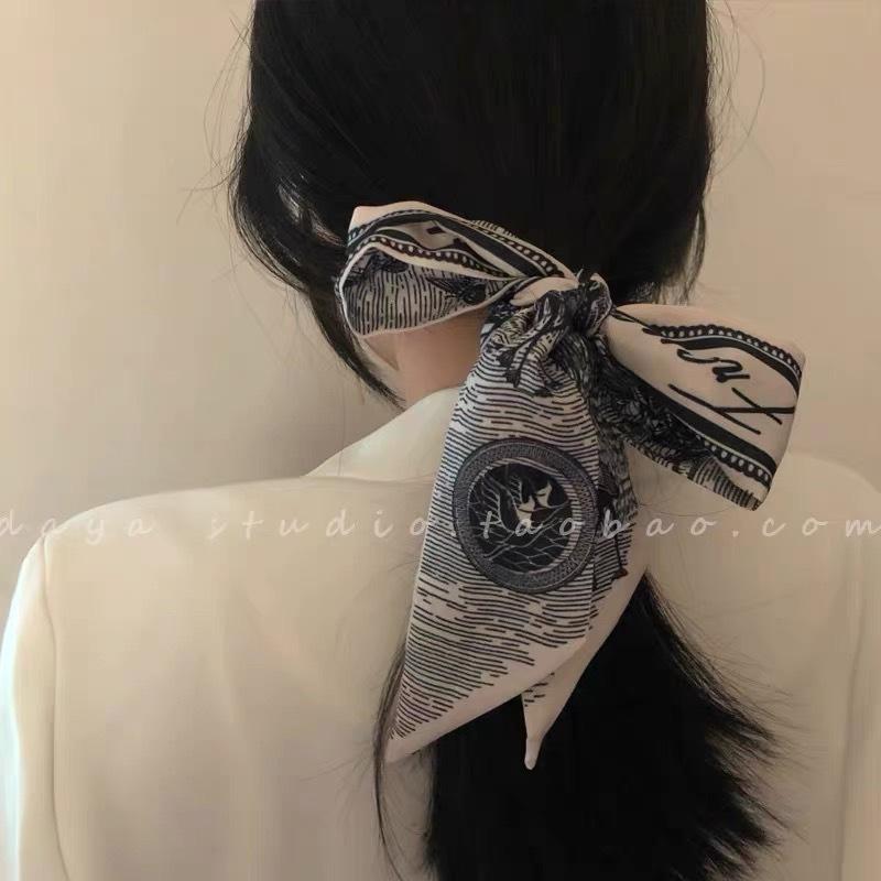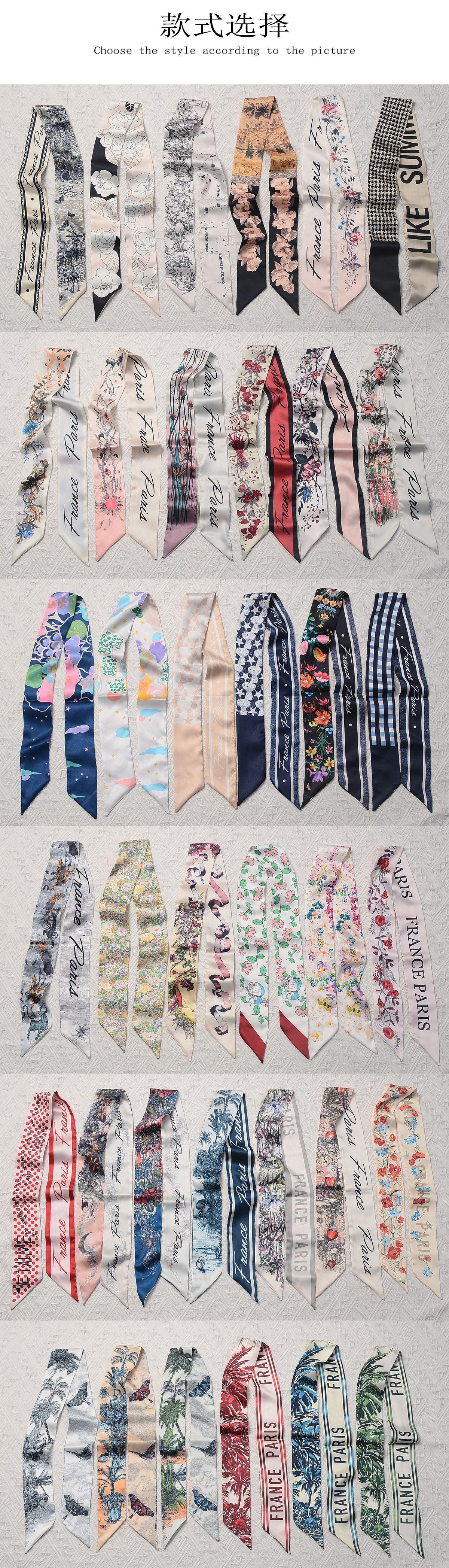 Pañuelo para la cabeza, banda para el pelo, bufanda de seda retro, pequeña y larga, para mujer, lazo para el pelo, cinturón, bolso, bufanda de invierno, novedad de 2023