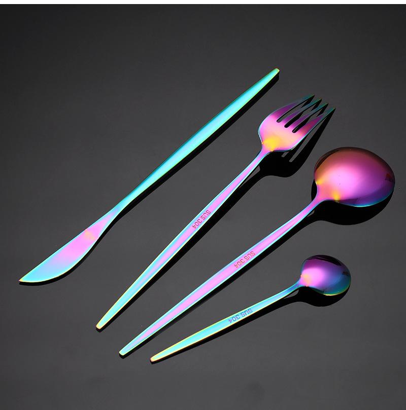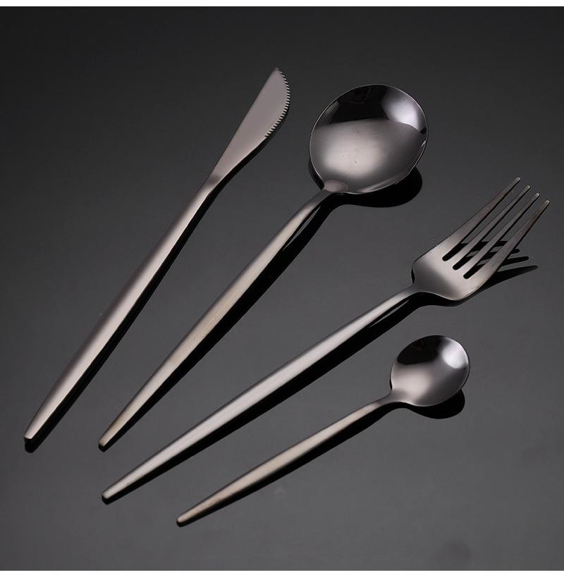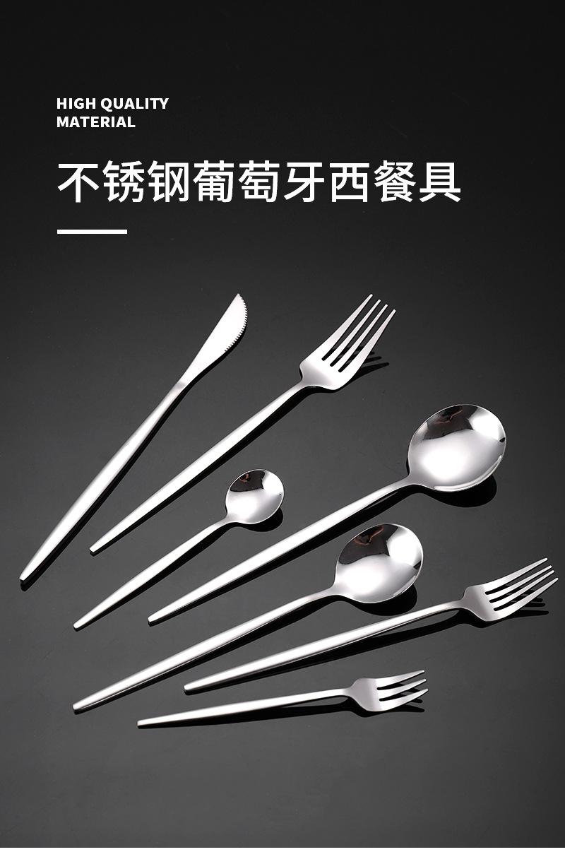 Cuchillo, tenedor y cuchara de acero inoxidable portugués, aptos para hotel, vajilla occidental, cuchillo para carne, tenedor de fruta, cuchara de postre, juego transfronterizo de cuatro piezas