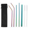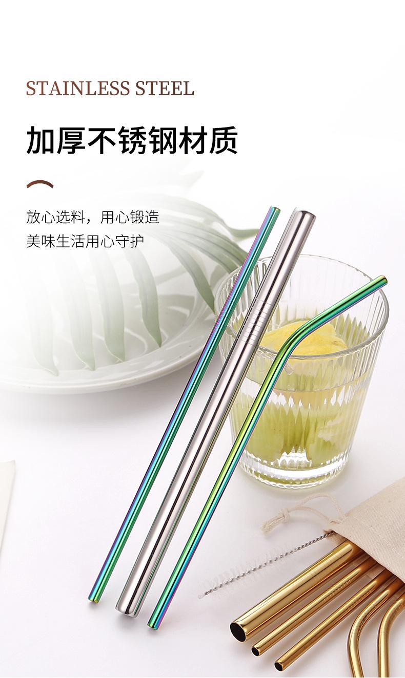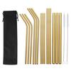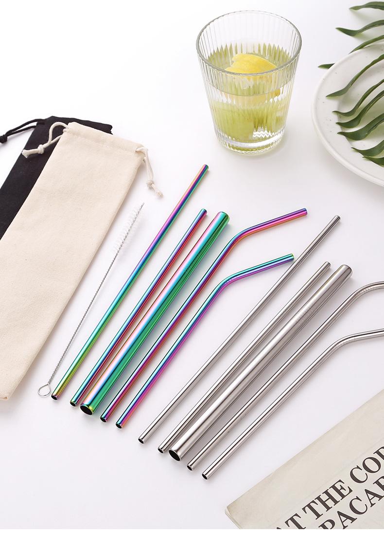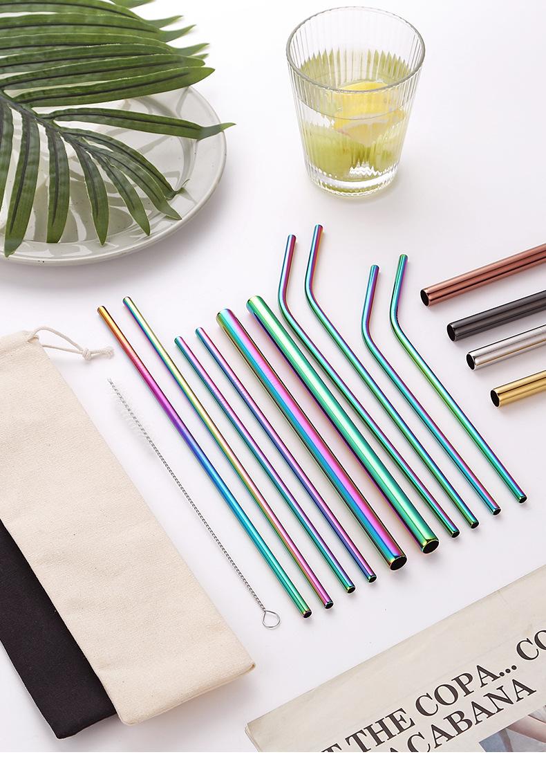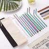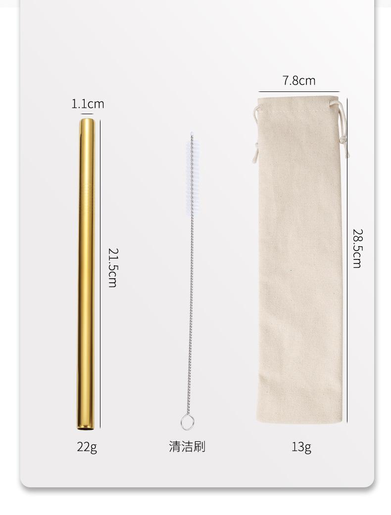 Juego de pajitas de acero inoxidable 304, bolsa de tela de metal con borde cruzado, para leche, té, café y bebidas, pajita larga