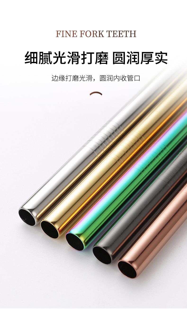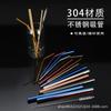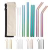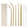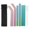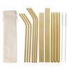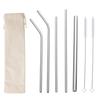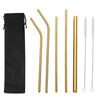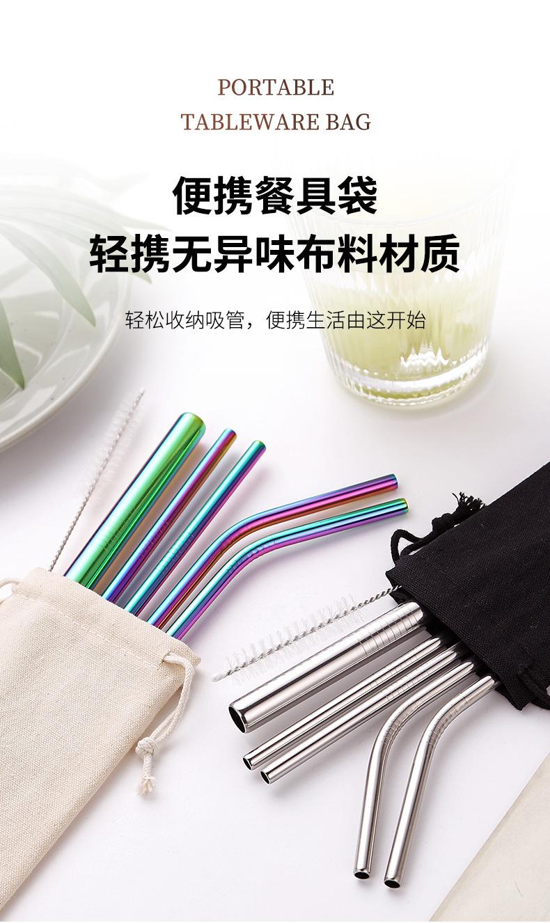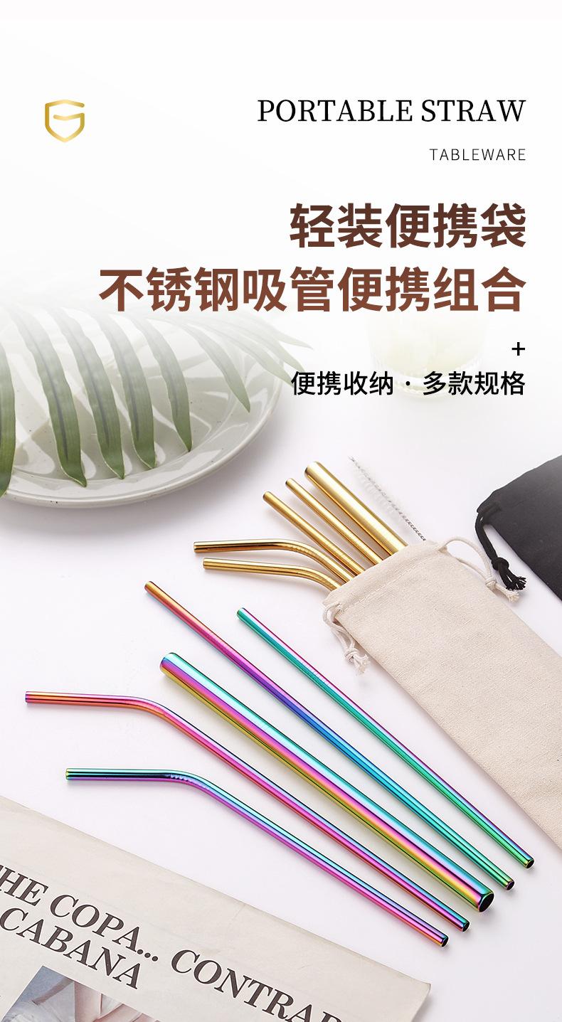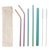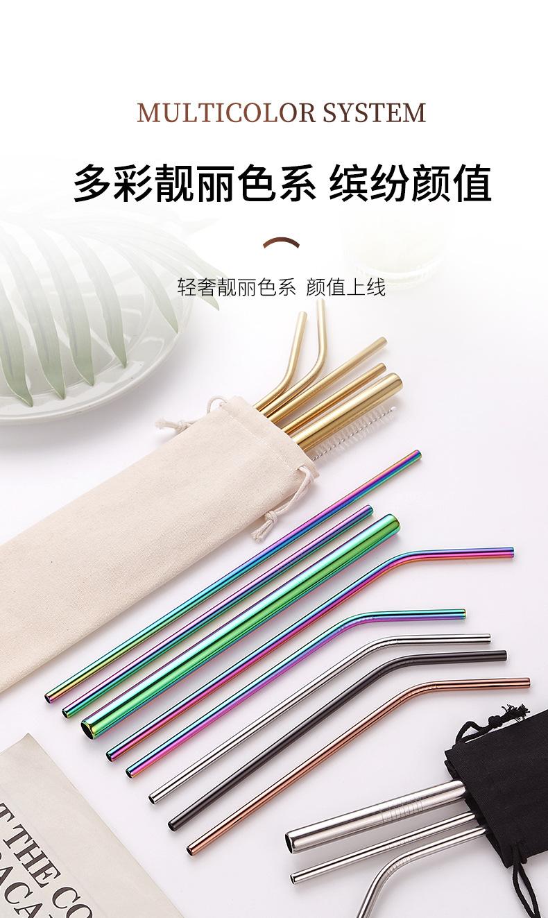 Juego de pajitas de acero inoxidable 304, bolsa de tela de metal con borde cruzado, para leche, té, café y bebidas, pajita larga