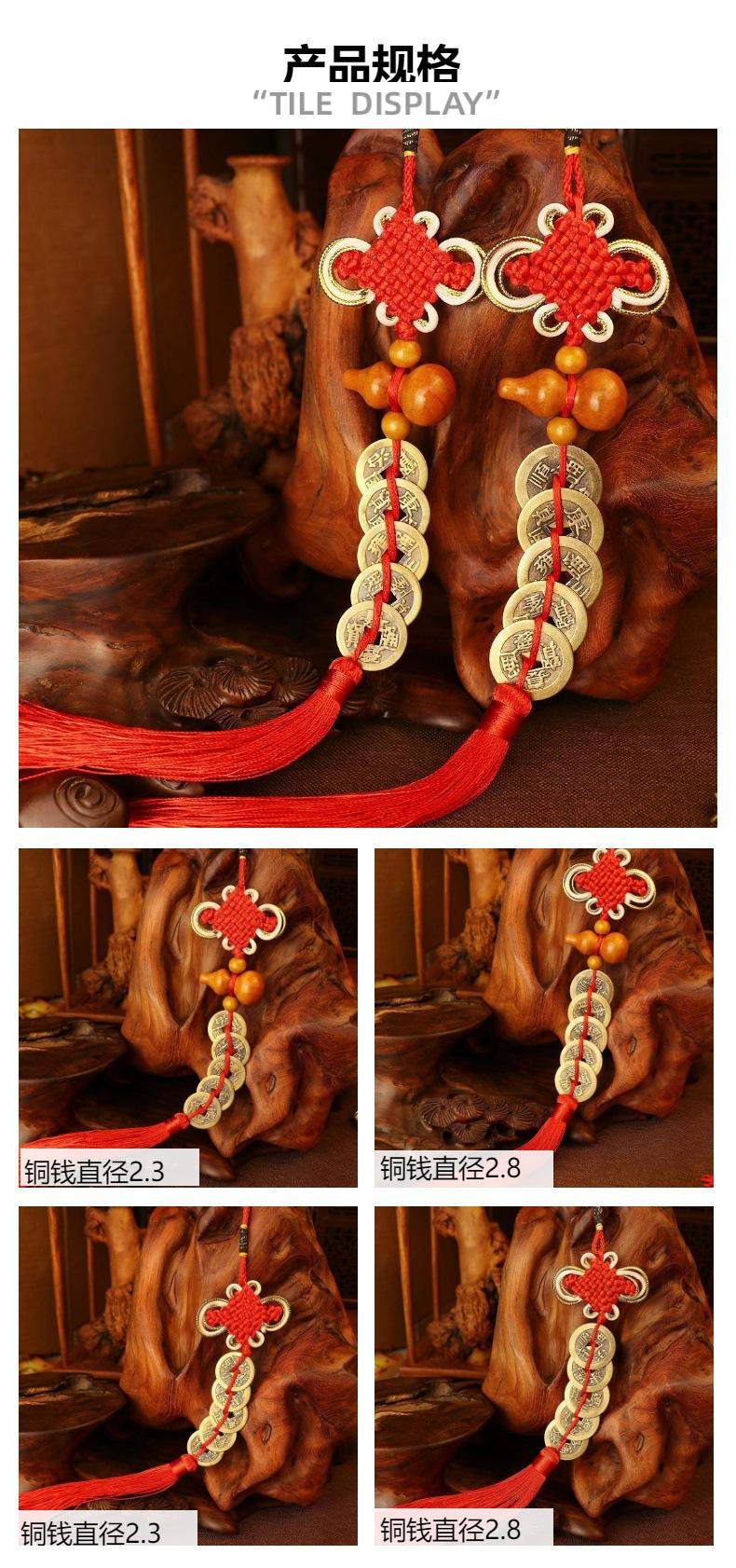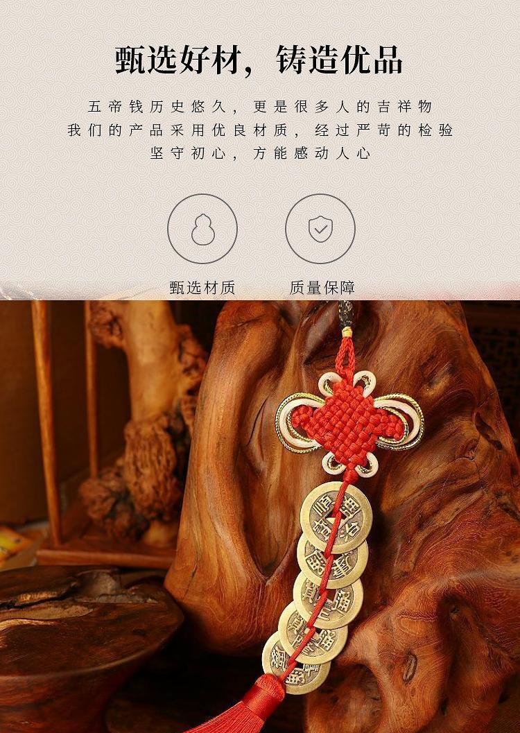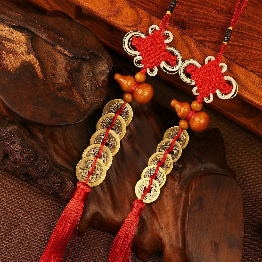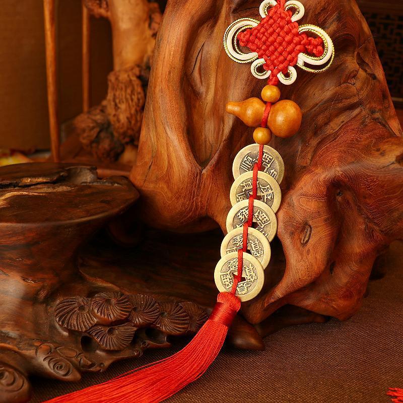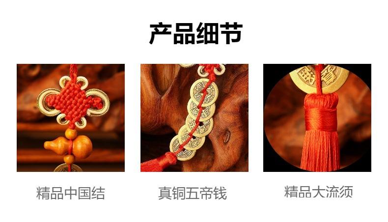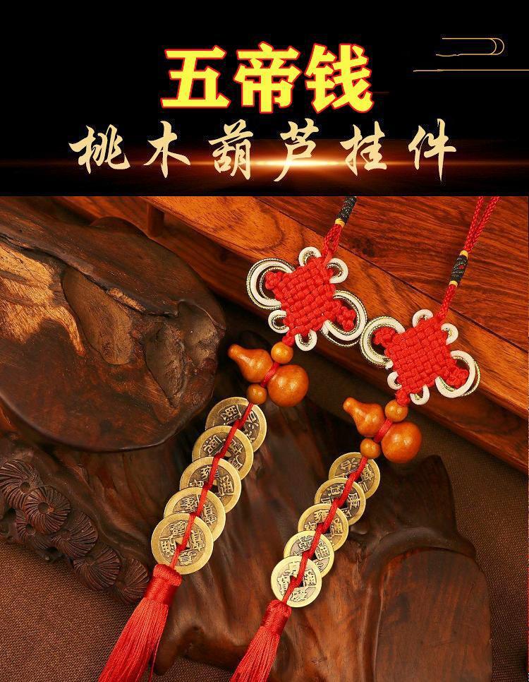 Nombre: Colgante de Calabaza de Madera de Durazno con Monedas de los Cinco Emperadores