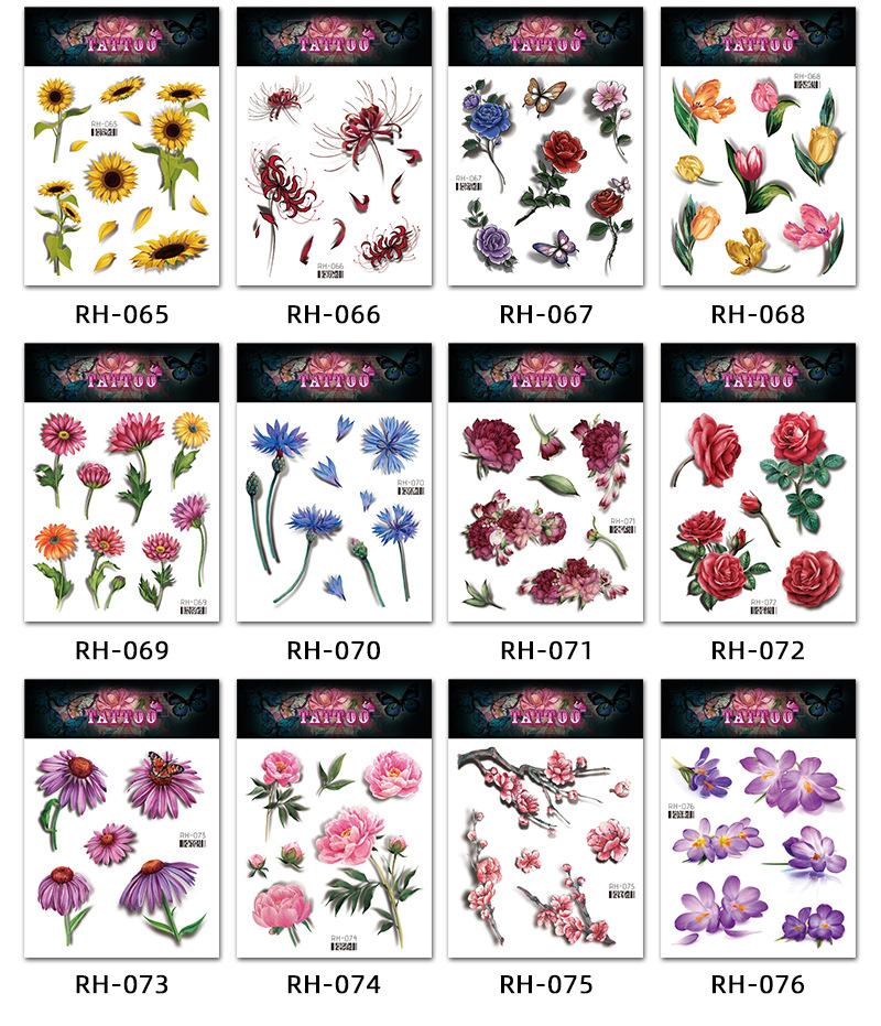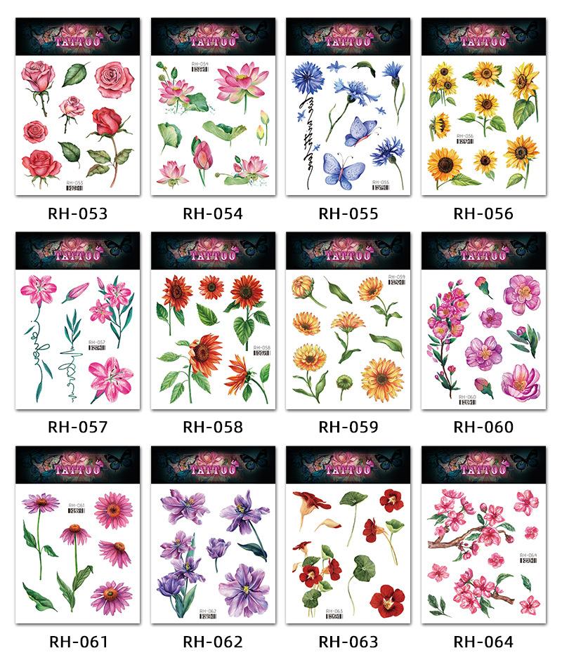 Suministro transfronterizo de nuevas pegatinas de tatuaje impermeables de color, pegatinas de tatuaje de flores, pegatinas de tatuaje desechables al por mayor