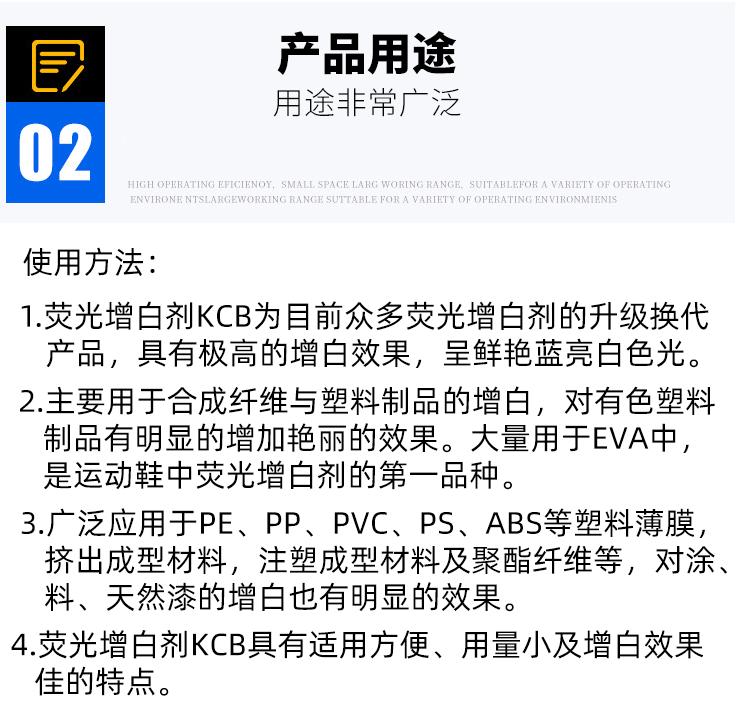 Abrillantador fluorescente KCB blanqueador abrillantador abrillantador abrillantador utilizado para blanquear plástico espumado material de calzado EVA
