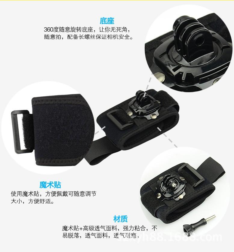 Características: Cómoda y ajustable muñequera y brazalete elásticos, que te hacen más libre y facilitan el control del disparo, se pueden usar en proyectos deportivos al aire libre como ciclismo, motociclismo, esquí, surf, etc., permitiendo que tu cámara capture los mismos momentos maravillosos mientras haces ejercicio.