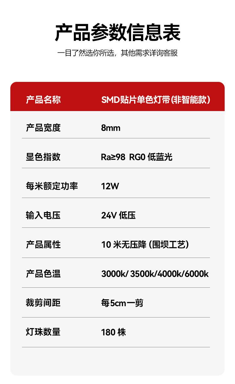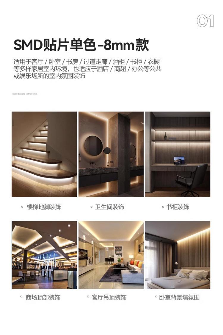 Tira de Luz LED Huiying Color Único Espectro Completo 98 Pantalla de Dedos Bajo Voltaje 24V Adhesivo Autoadhesivo Techo Vitrina de Vinos Tira de Luz Lineal