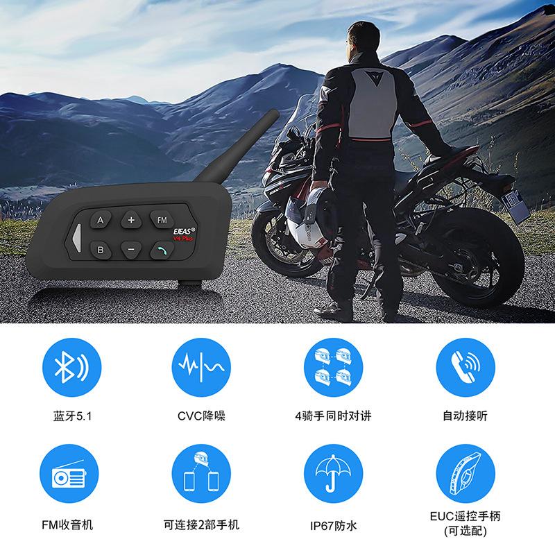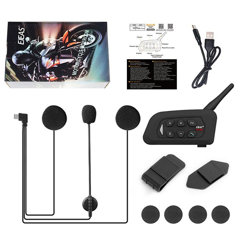 Compra Casco de motocicleta EJEAS, walkie-talkie Bluetooth de doble chip, intercomunicador simultáneo para 4 personas, V4plus, venta directa de fábrica al por mayor en Joom.pro