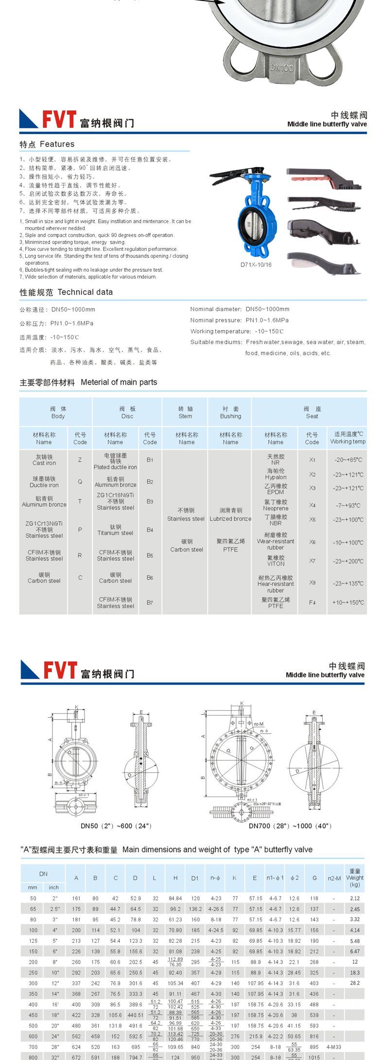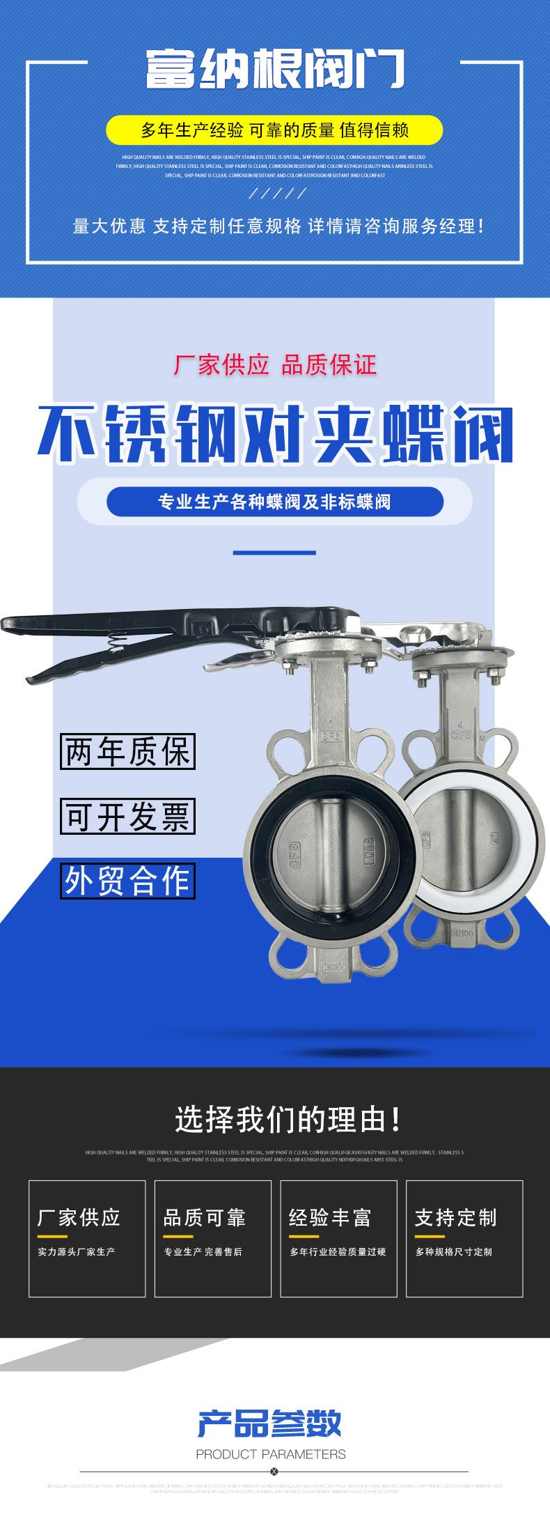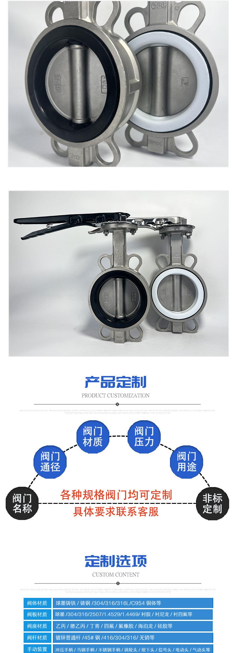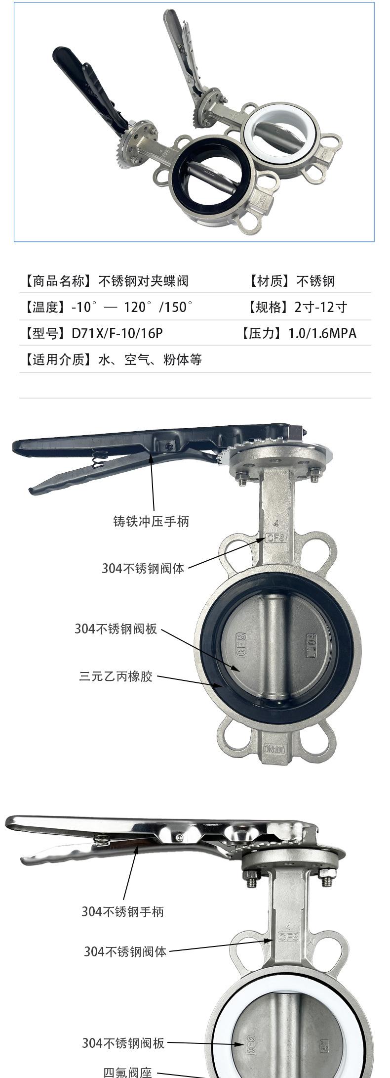 Válvula de Mariposa Manual de Acero Inoxidable 304 Clip de Manija de Válvula 316 Ptfe Válvula de Mariposa Línea Media Válvula de Mariposa Bidireccional D71X/F