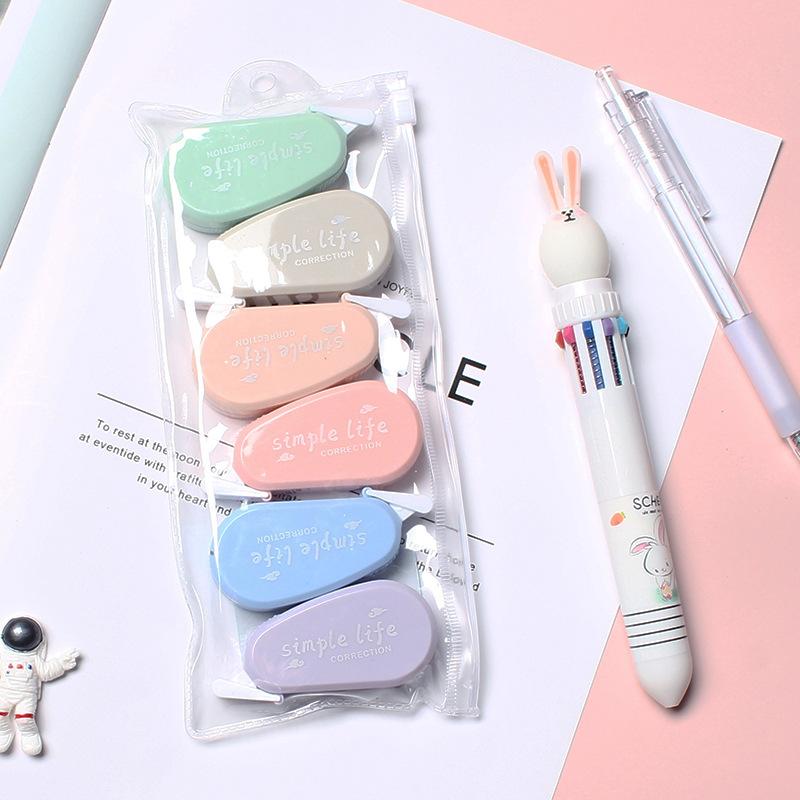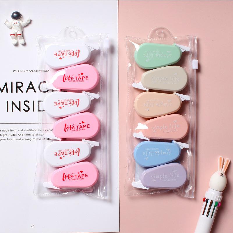 Mini Cinta Correctora Flip-Top Papelería para Estudiantes Suministros para el Aprendizaje Cinta Correctora de Dibujos Animados Paquete de 6 Cinta Correctora de Alto Valor