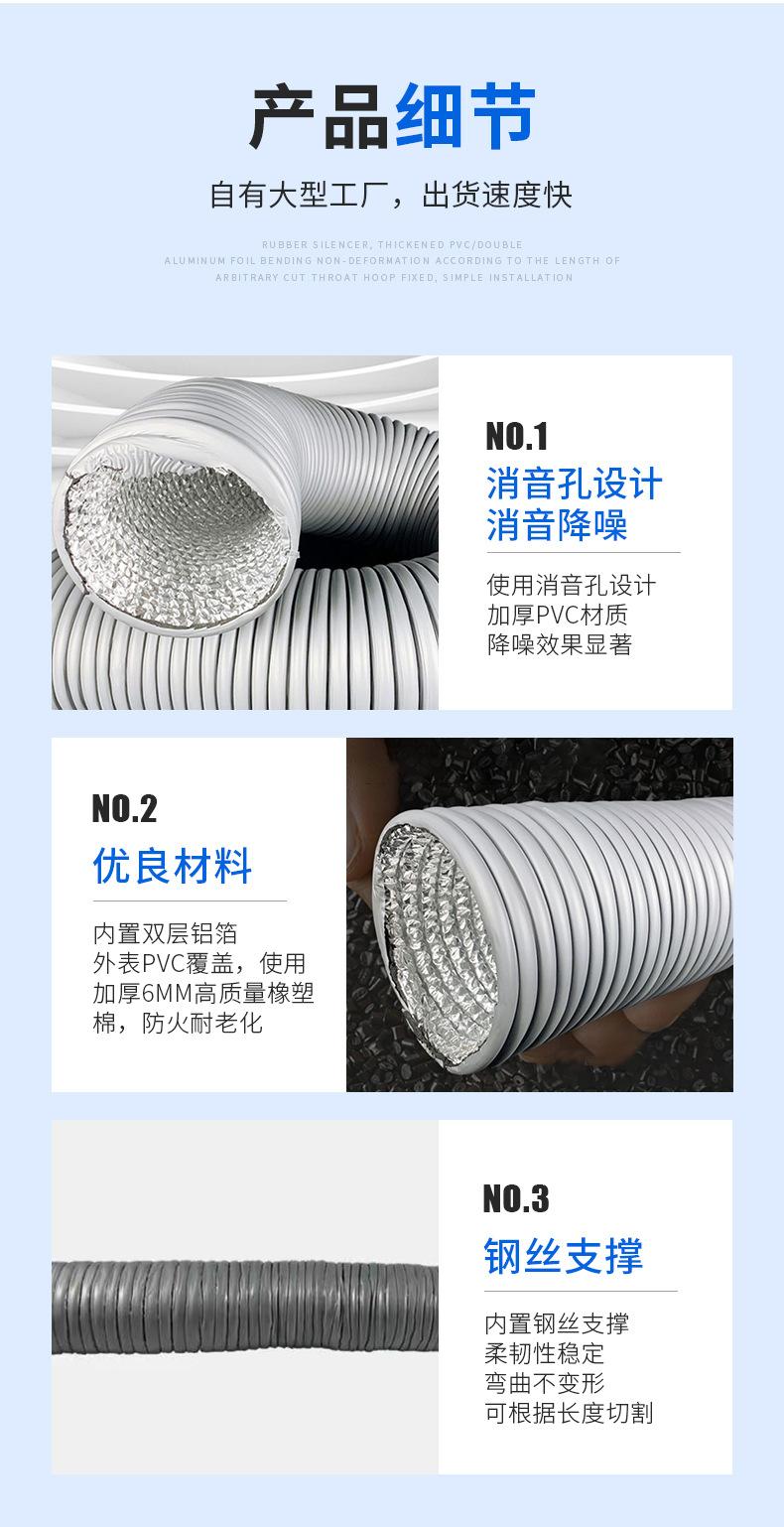 Tubo silenciador de doble capa de caucho y plástico, conducto de aire de PVC engrosado, silenciador de aire fresco, tubo aislante de reducción de ruido, tubo telescópico de ventilación de escape de humos.