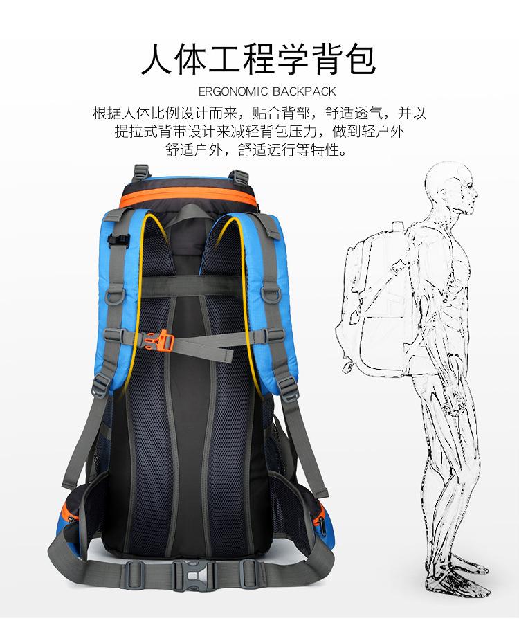 Nueva bolsa de montañismo 70L gran capacidad repelente al agua ocio deportes senderismo mochila hombres y mujeres mochila de viaje para exteriores