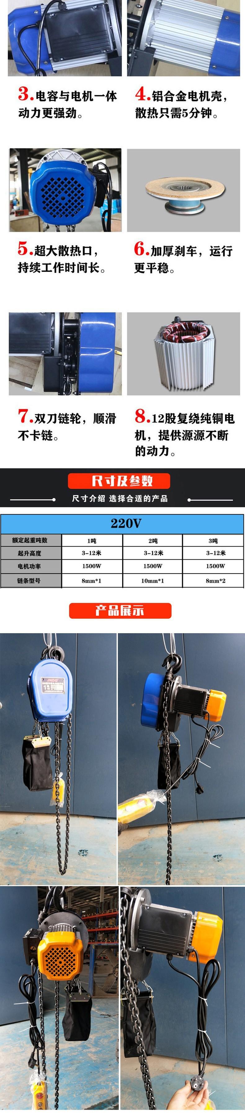 Polipasto eléctrico de cadena de 1 tonelada para uso doméstico, polipasto de elevación de 3 toneladas, polipasto de elevación de 2 toneladas, grúa, polipasto eléctrico