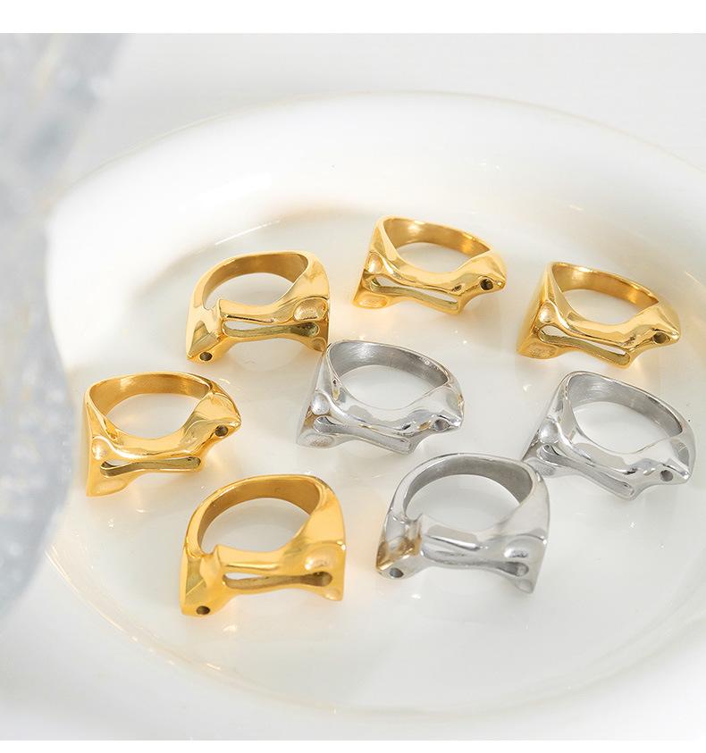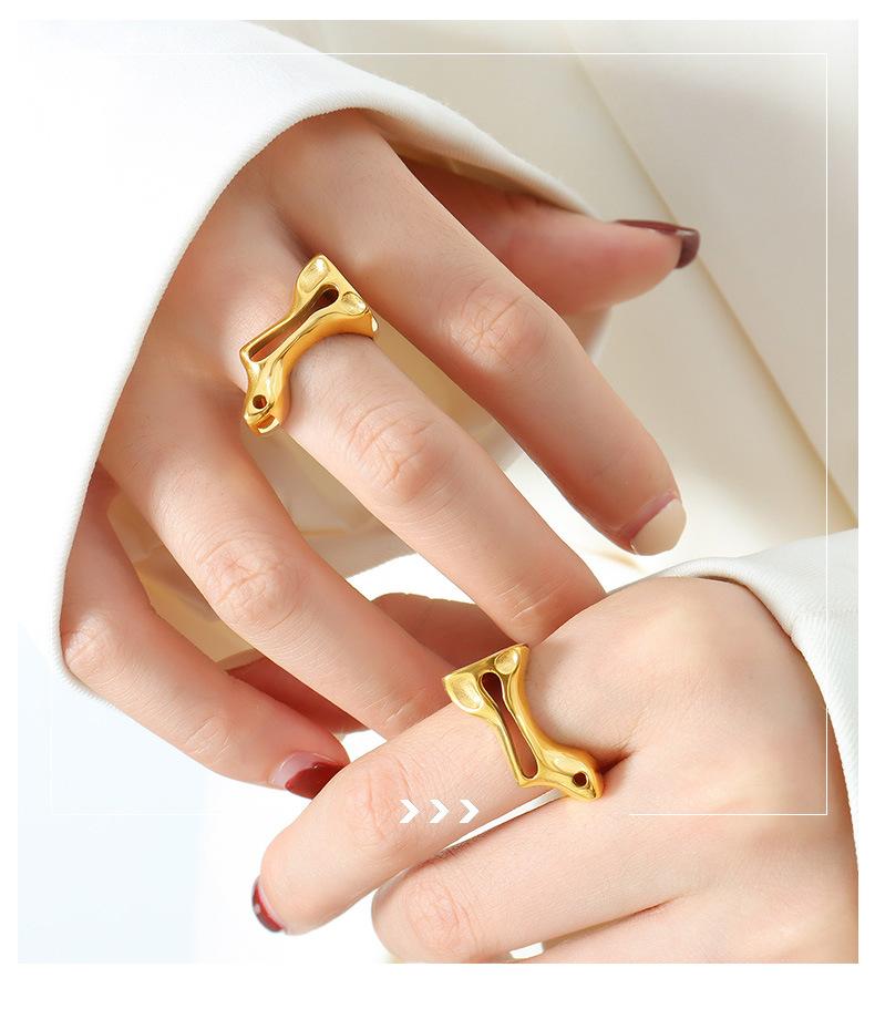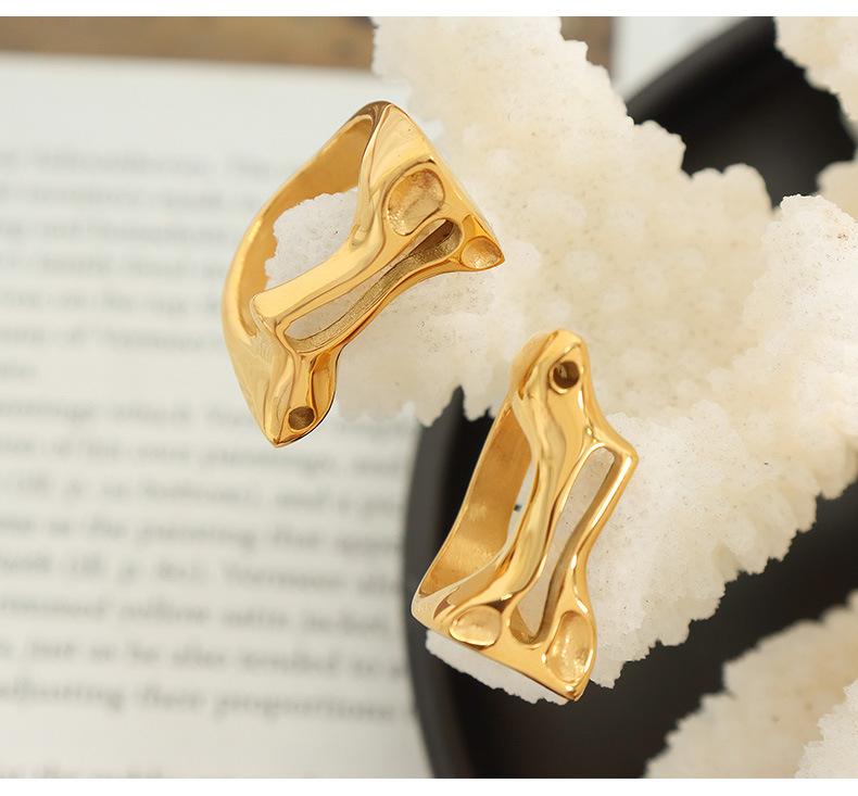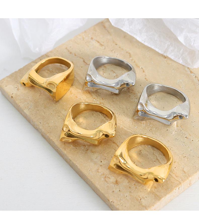 Anillo de Dedo Hueco Irregular Geométrico Anillo de Acero de Titanio Joyería Popular Creativa Europea y Americana Anillo de Metal Personalizado