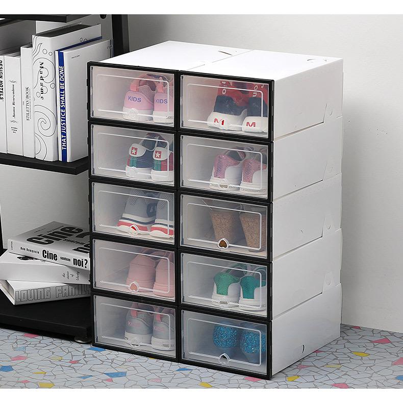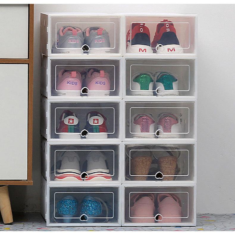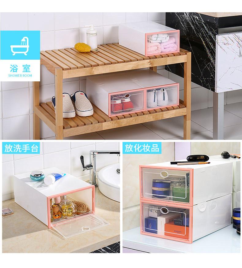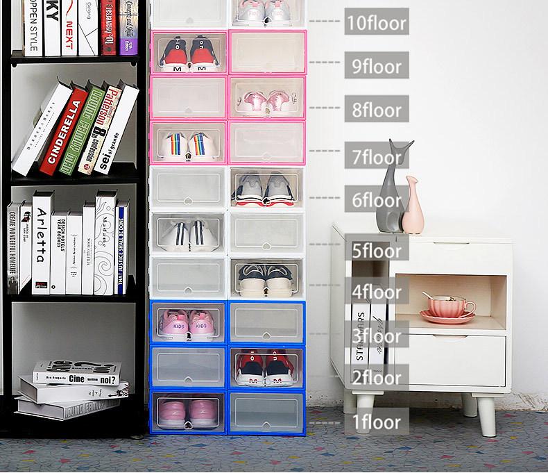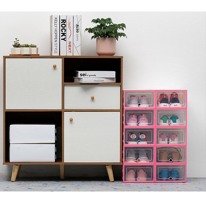 Caja de zapatos de plástico transparente engrosado estilo zapatero caja de almacenamiento de escritorio caja de zapatos colorida abatible almacenamiento multiusos caja de zapatos