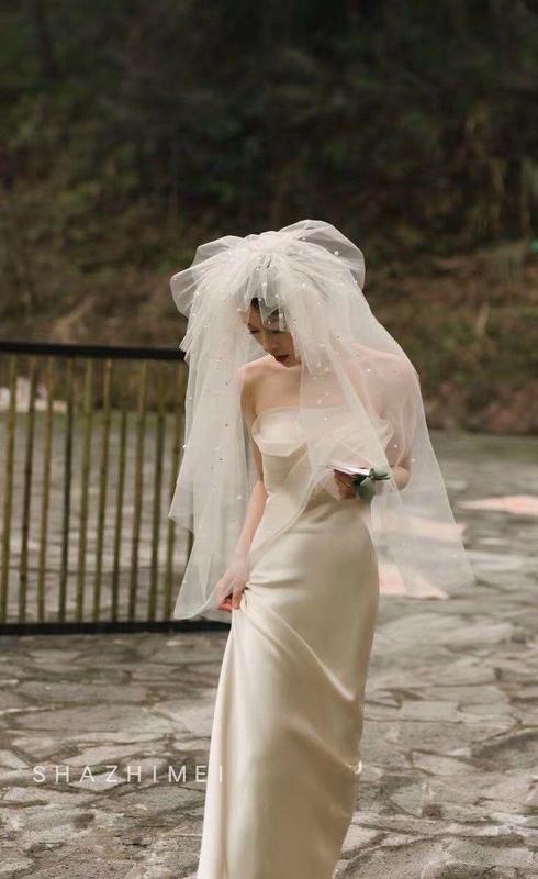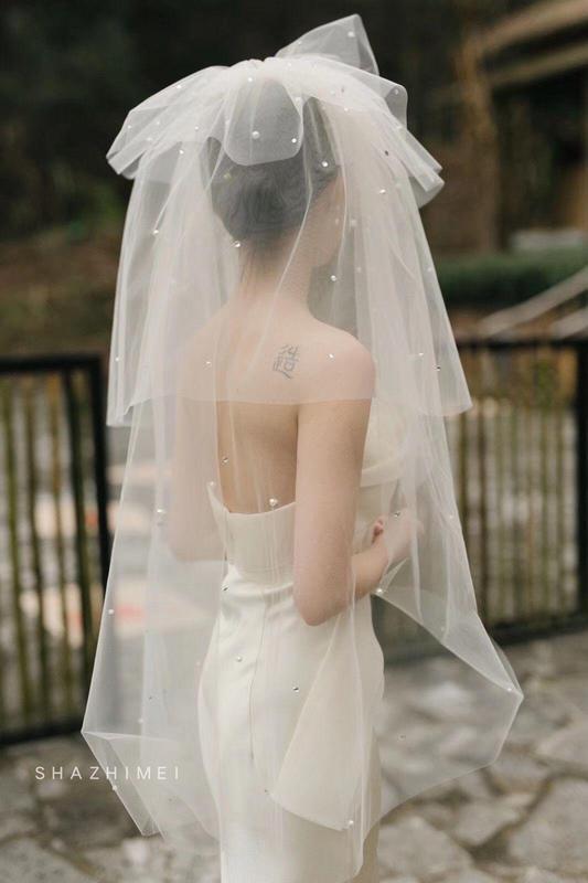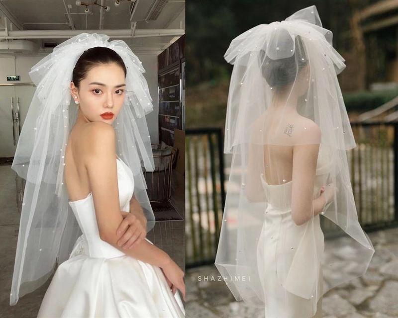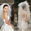 Velo de Novia Multicapa Perlas y Pedrería Estilo Fotografía de Alta Gama Esponjoso Retro Accesorios para el Cabello de Boda Fénix Boda