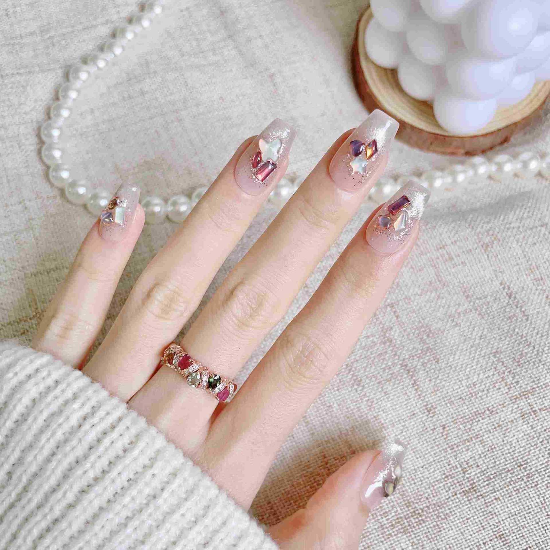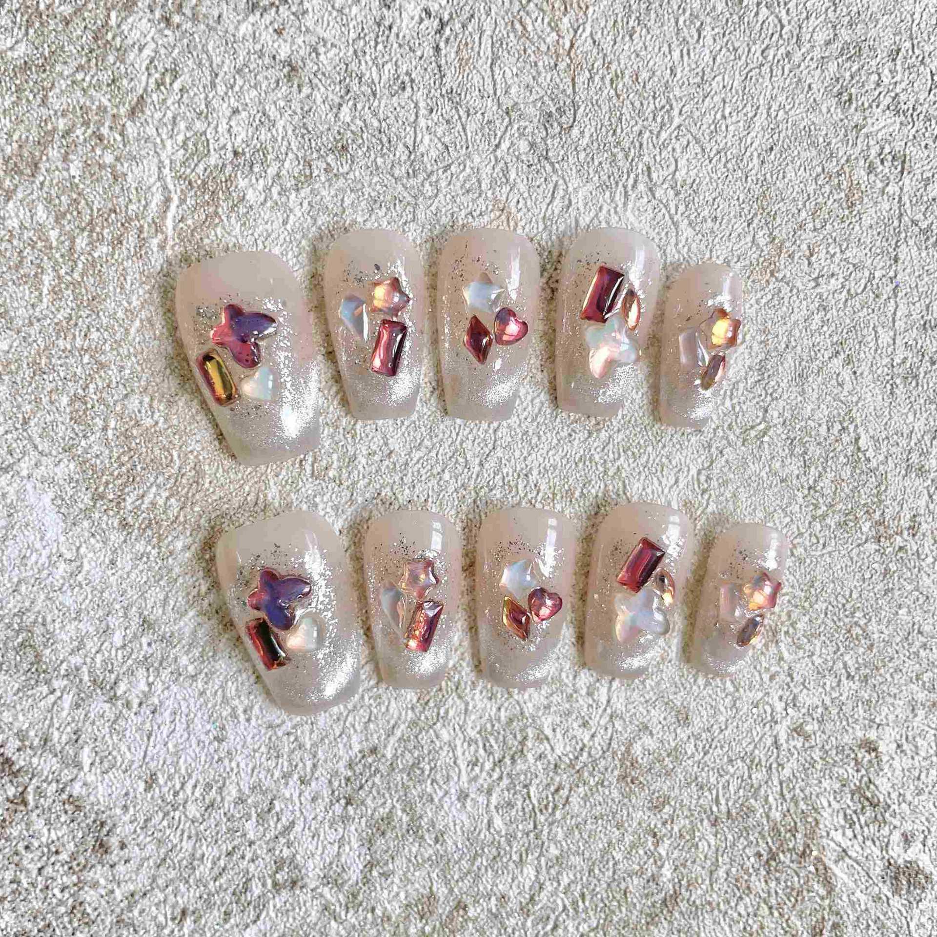 Compra Uñas postizas hechas a mano otoño e invierno nuevo parche de uñas producto terminado flash diamante completo ojo de gato sonrisa francés pieza de uña postiza al por mayor en Joom.pro