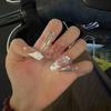 Foto real pieza de uña postiza hecha a mano hecha a mano desmontable portátil uña caricatura amor puro sentido de chica gatita estilo francés