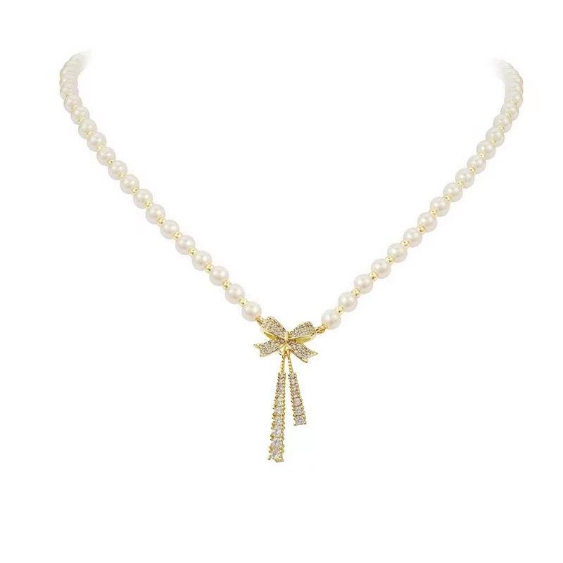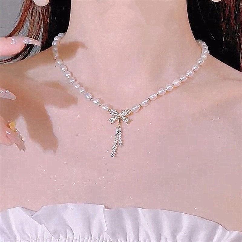 Collar de Perlas con Lazo para Mujer 2025 Nuevo Diseño Moderno de Lujo Ligero Estilo Celebridad de Internet Collar Cadena Clavícula
