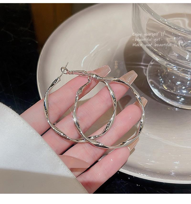 Compra Pendientes de plata S925 con forma de aguja, estilo europeo y americano, exagerados, grandes y ligeros, de lujo, con giros metálicos sencillos, para mujer, accesorios para pendientes. al por mayor en Joom.pro