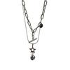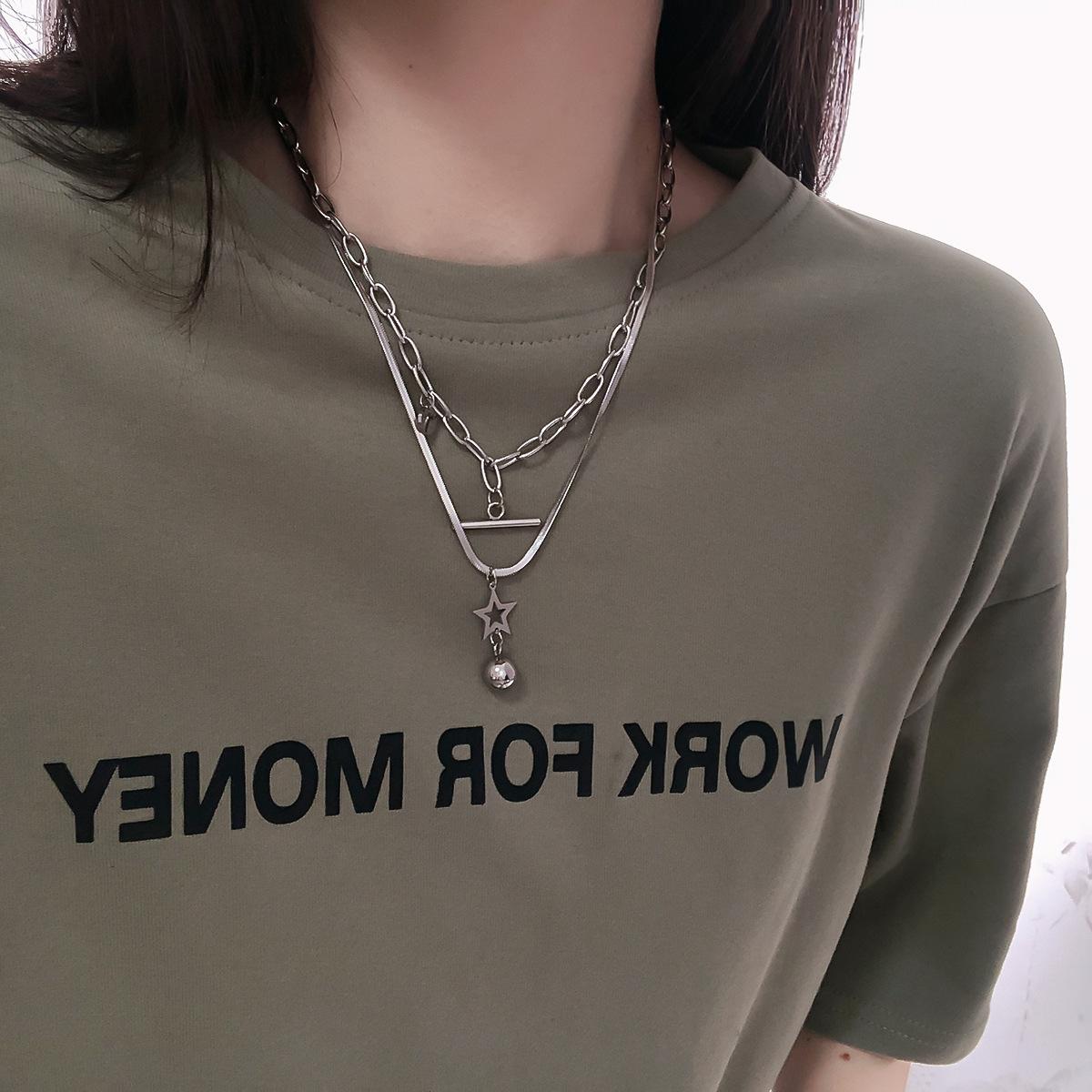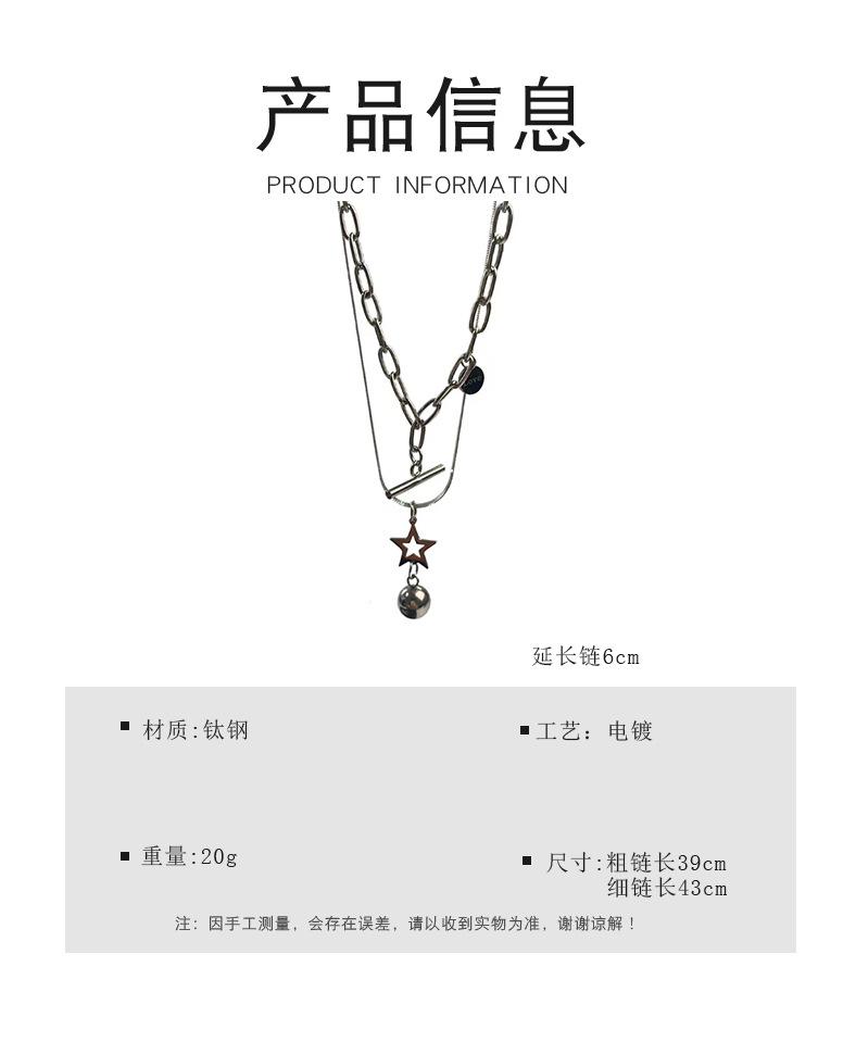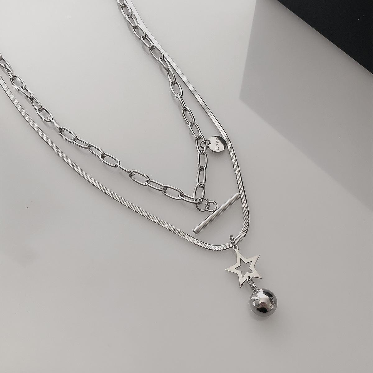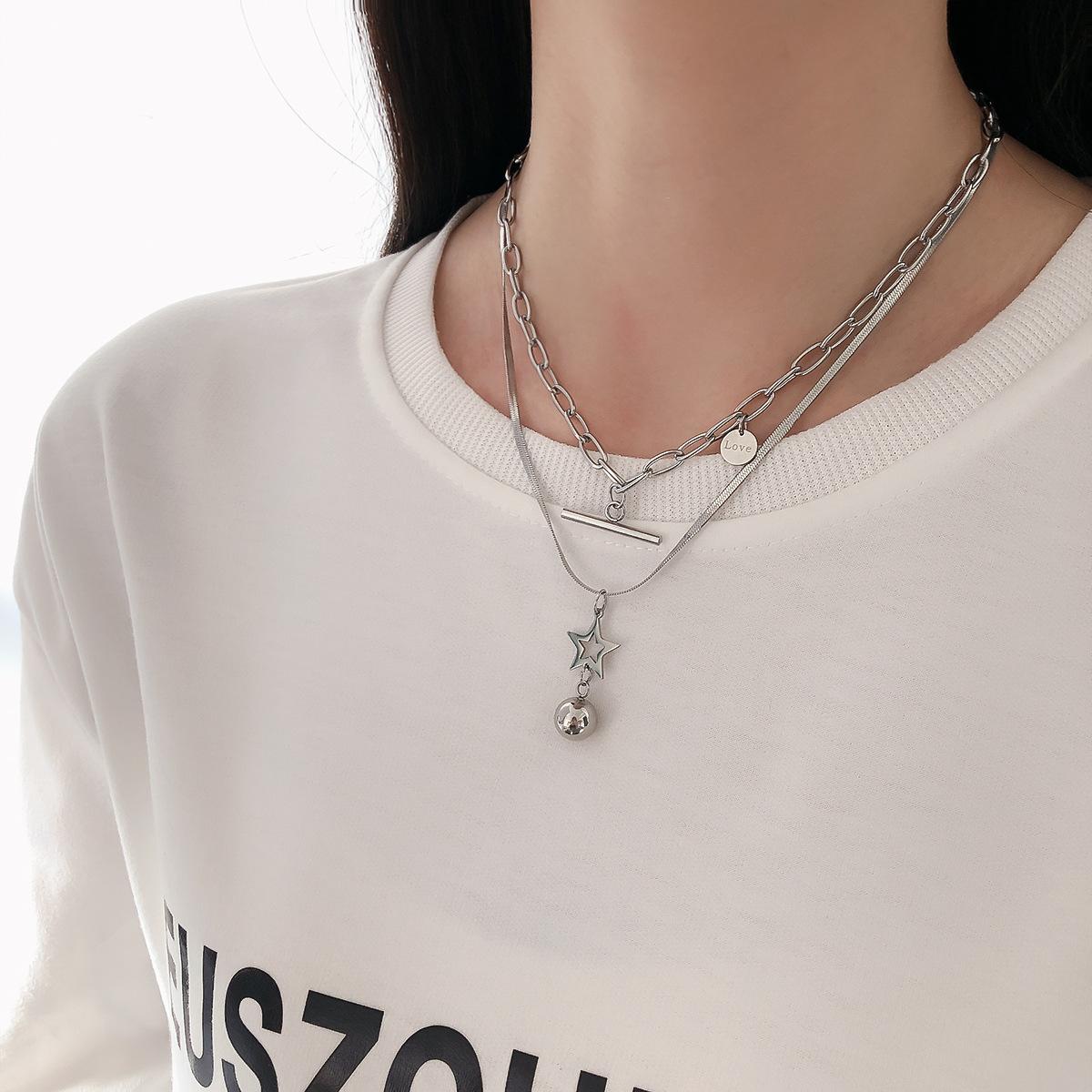 Collar de doble capa de acero de titanio para mujer, combinable con todo, estilo frío, diseño de nicho, cadena de hueso de serpiente, collar moderno con bola de metal y estrella.