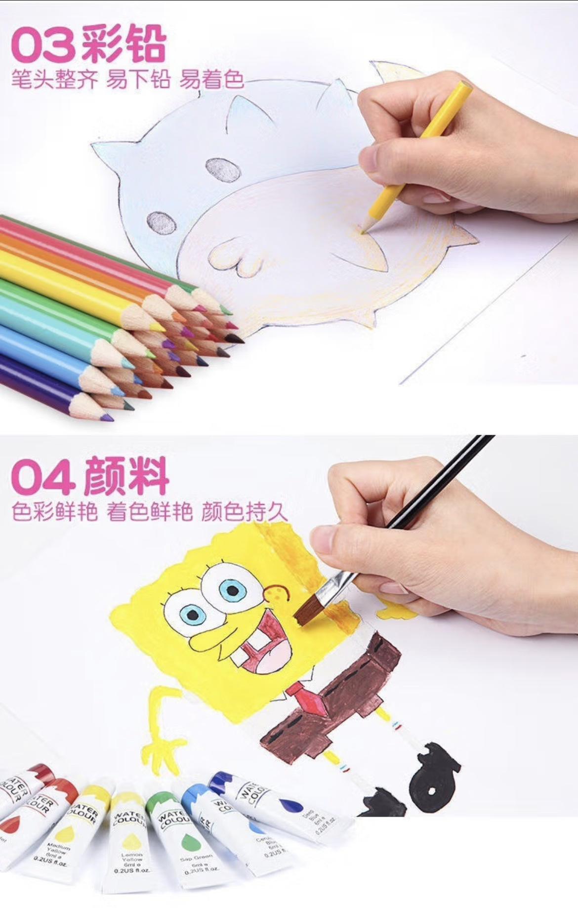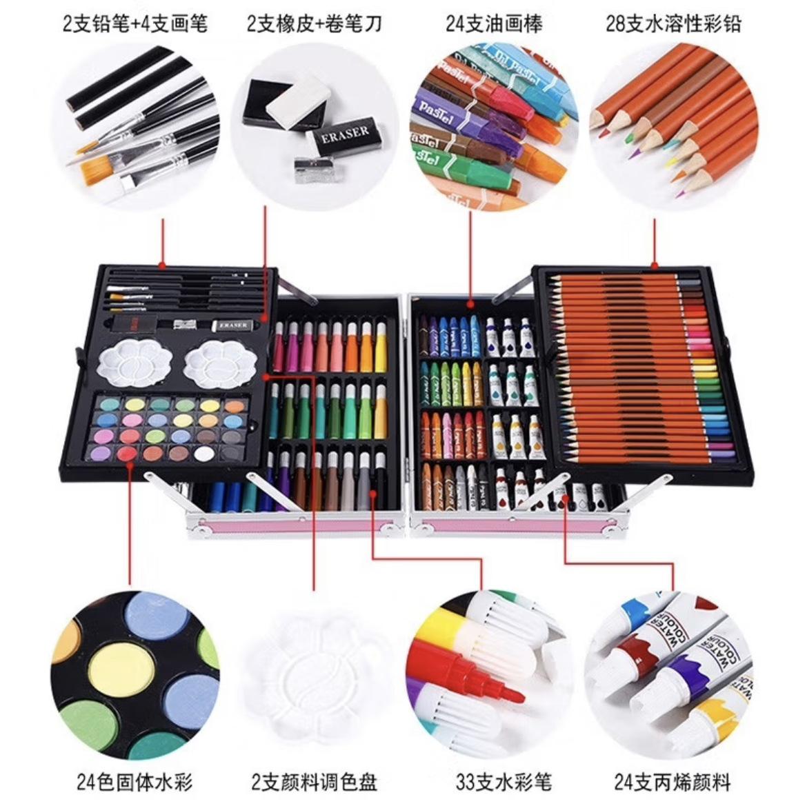 Juego de pintura para niños de 145 piezas de doble capa, juego de pinceles de alta calidad para escuela primaria, caja de regalo, grafiti, pintura al óleo, arte en barra