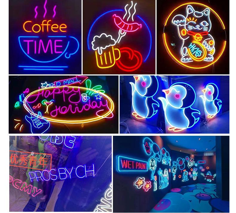 Tira de luz LED flexible de neón colorida y suave para publicidad al aire libre, resistente al agua, luminosa, con modelado de personajes, tira de luz de alambre de silicona.