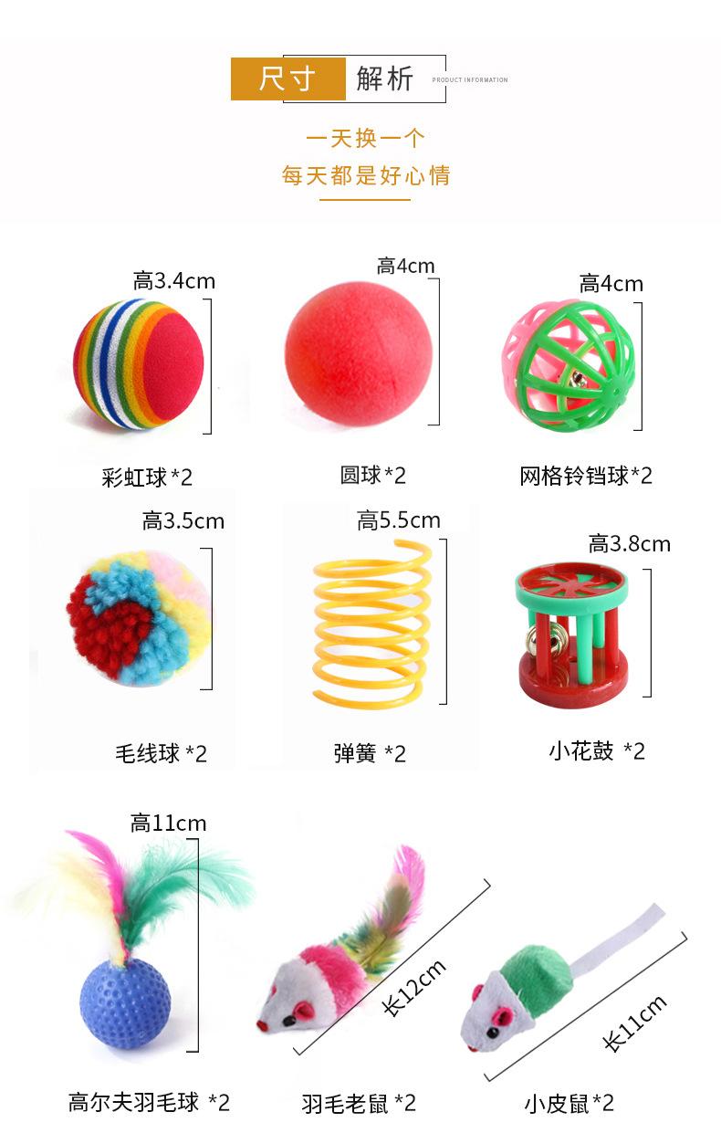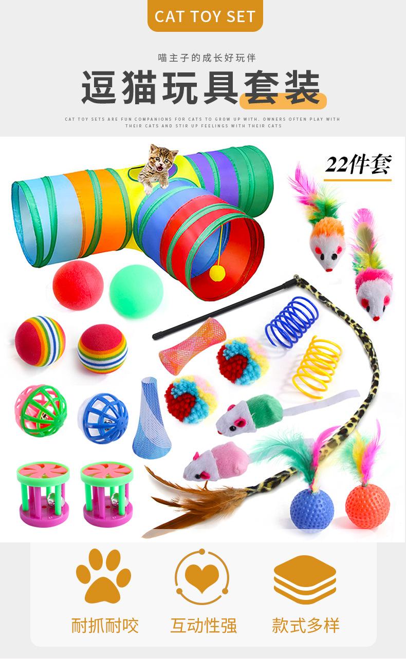 | Juguete para gatos transfronterizo, nuevo, con forma de campana, bola, pluma, palo de gato, peluche, ratón, resorte, túnel para gatos, juego de 22 piezas |