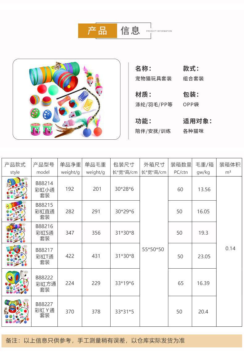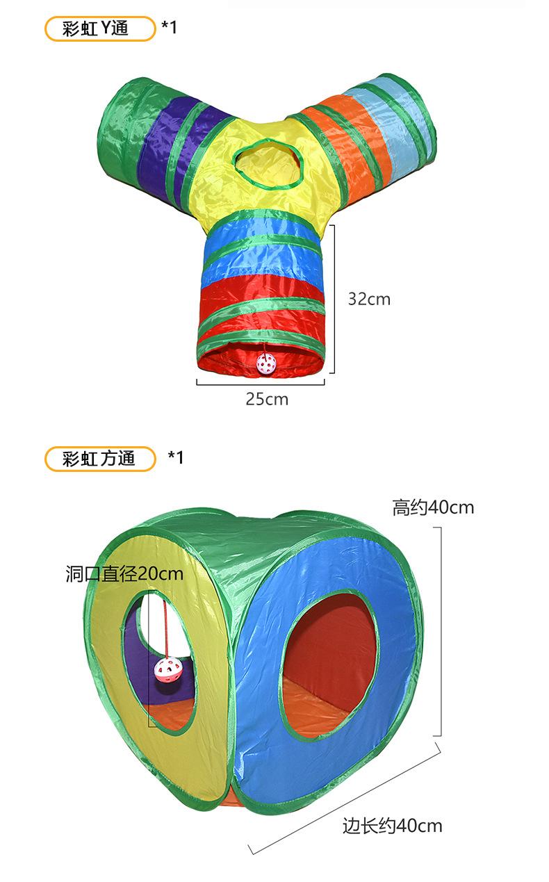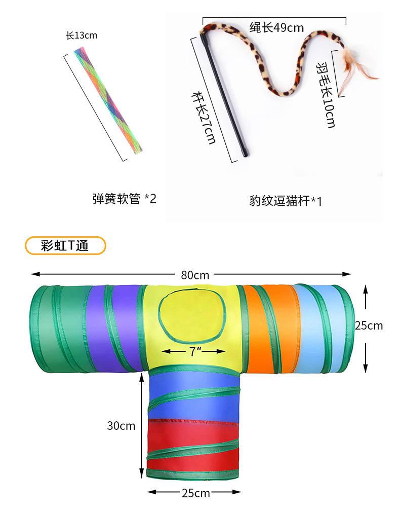 | Juego de túnel para gatos arcoíris transfronterizo, juguete, campana, pelota, pez volador, anillo de resorte, bola de papel, pluma, palo para gato |