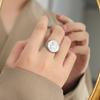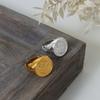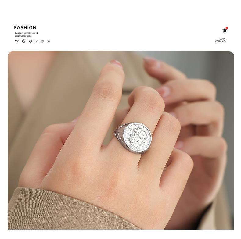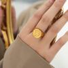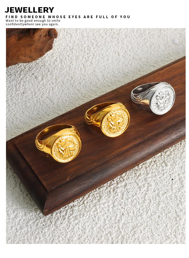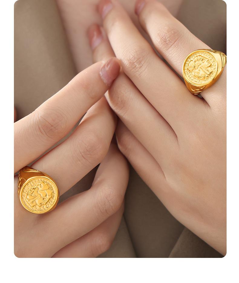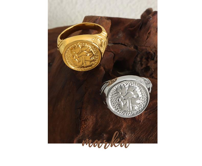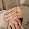 Anillo Margiela de acero de titanio chapado en oro con textura en relieve geométrica elegante y estilo frío.