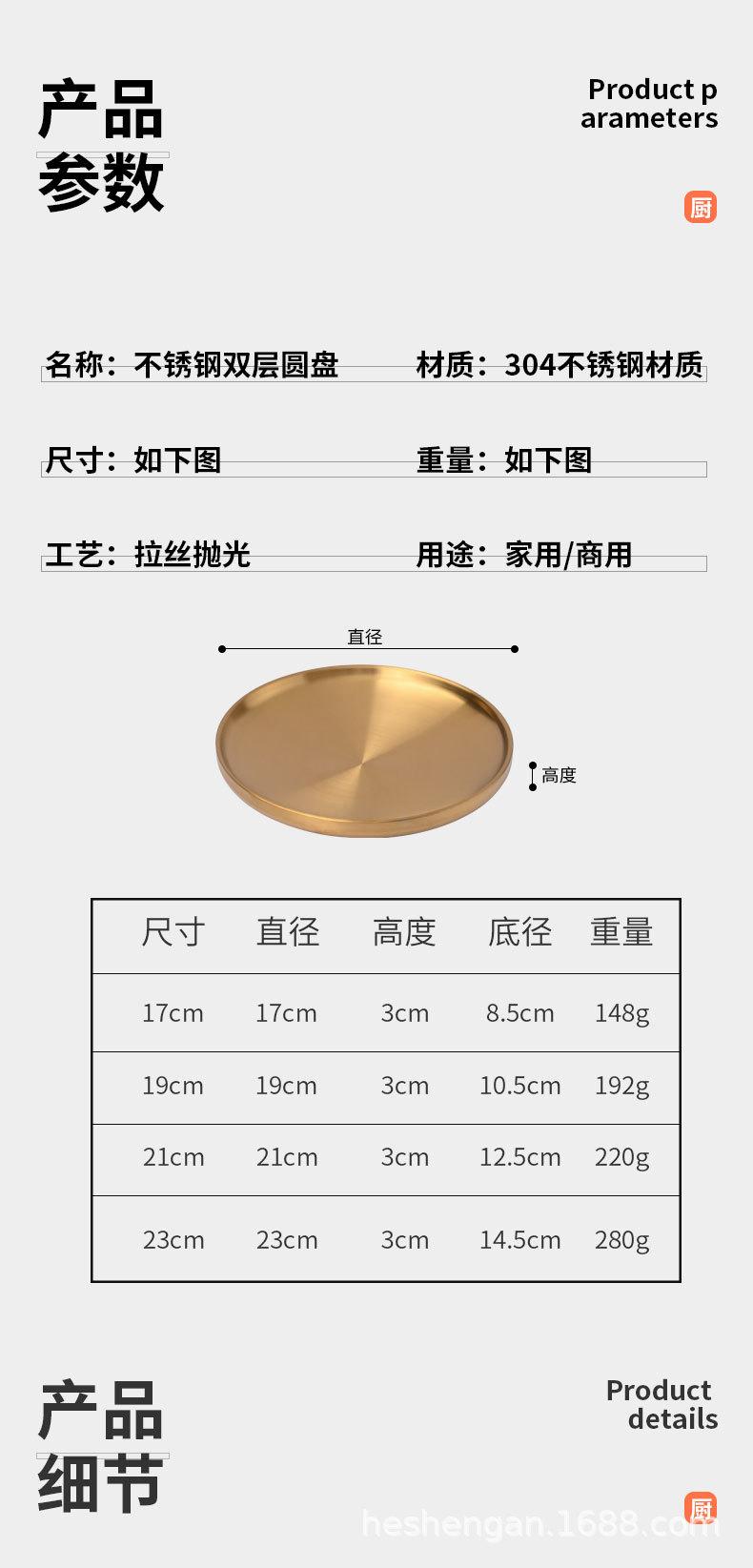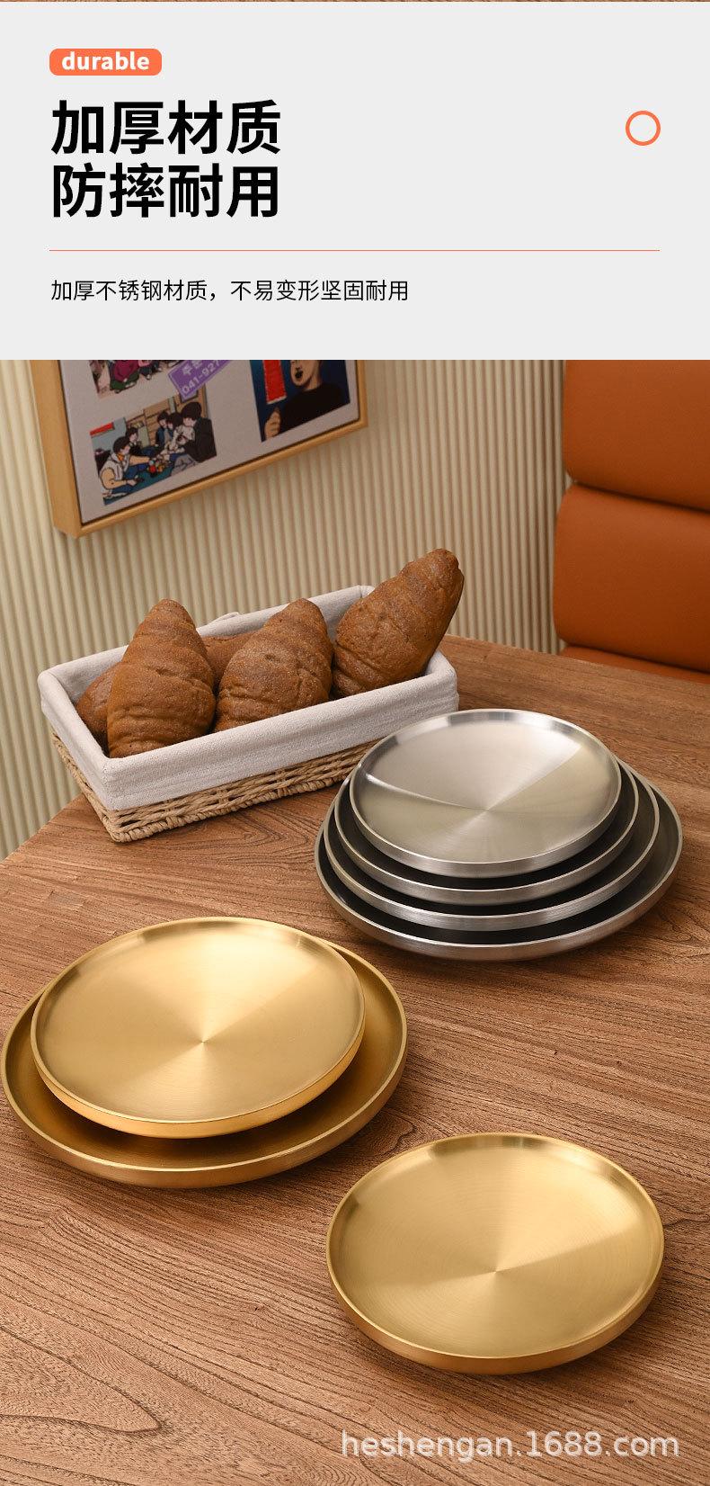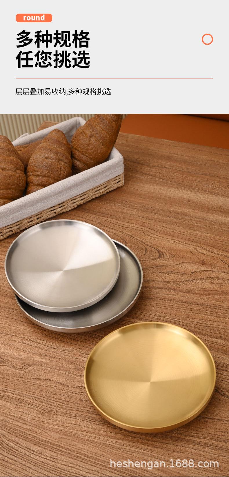 Plato de barbacoa dorado comercial de doble capa de acero inoxidable 304 coreano, plato plano aislado, plato de fruta