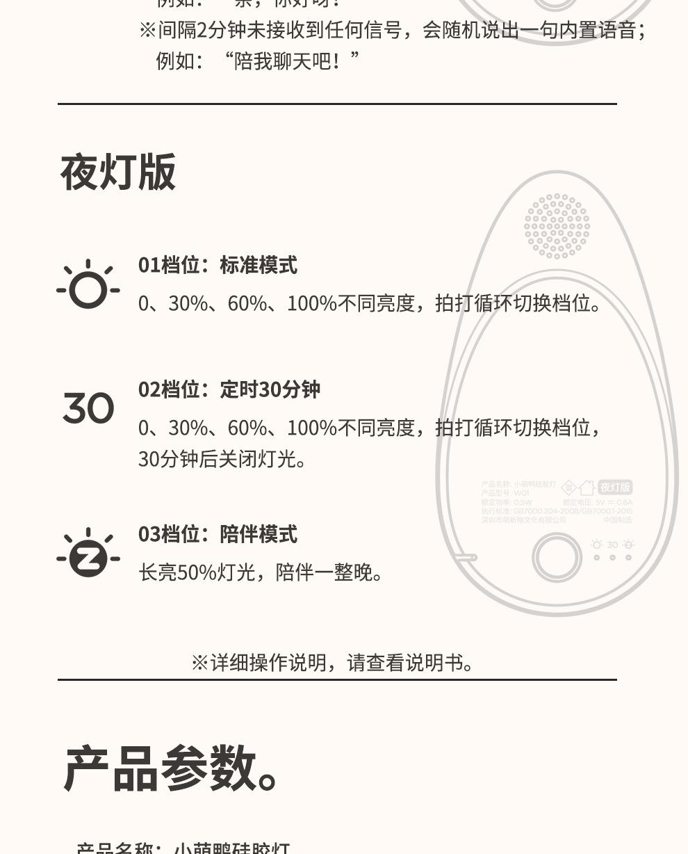 Warm light cute duck (basic model) can be ordered, Warm light cute duck (voice version)
